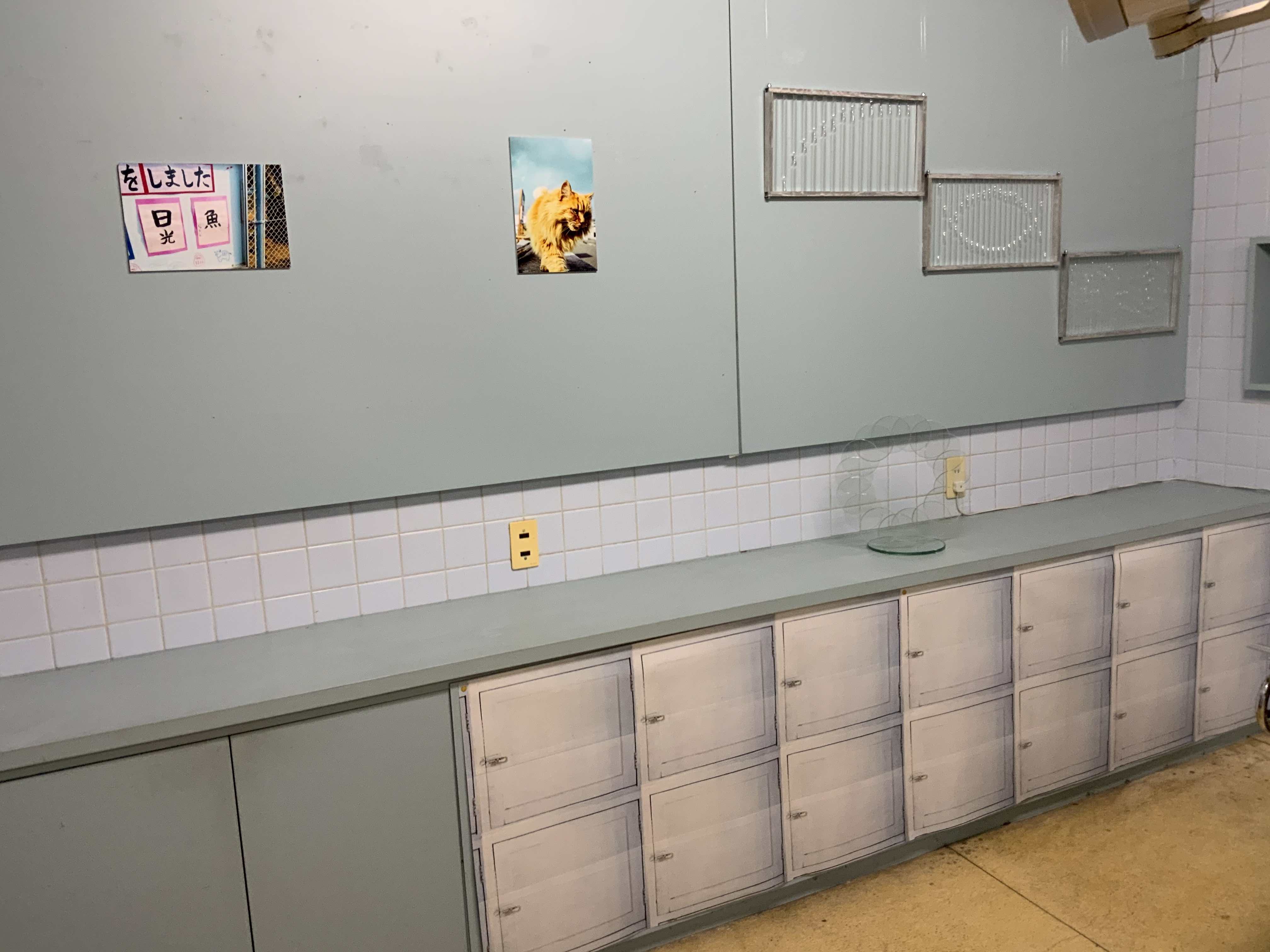 奥のガラス窓手前には、皆でシェアしてた八万湯の鍵が写真に収められている。