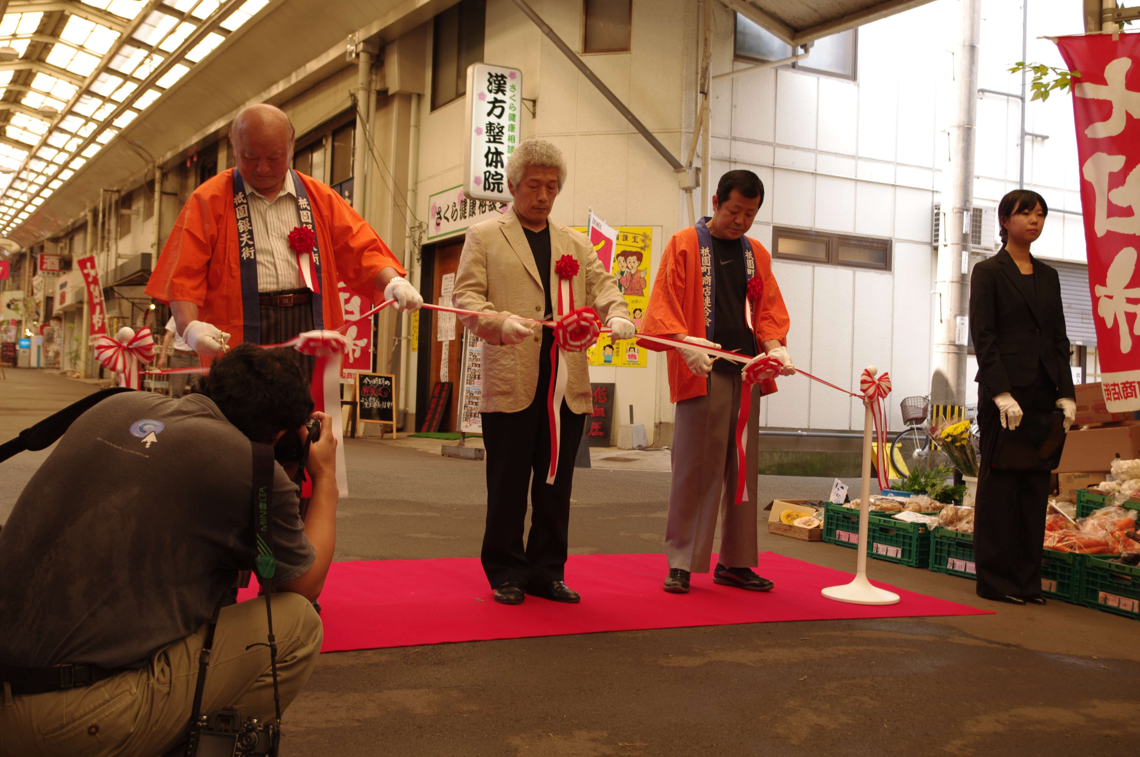 フォーラムの参加者をひきつれ旧銭湯、八万湯を案内する森と鈴木。