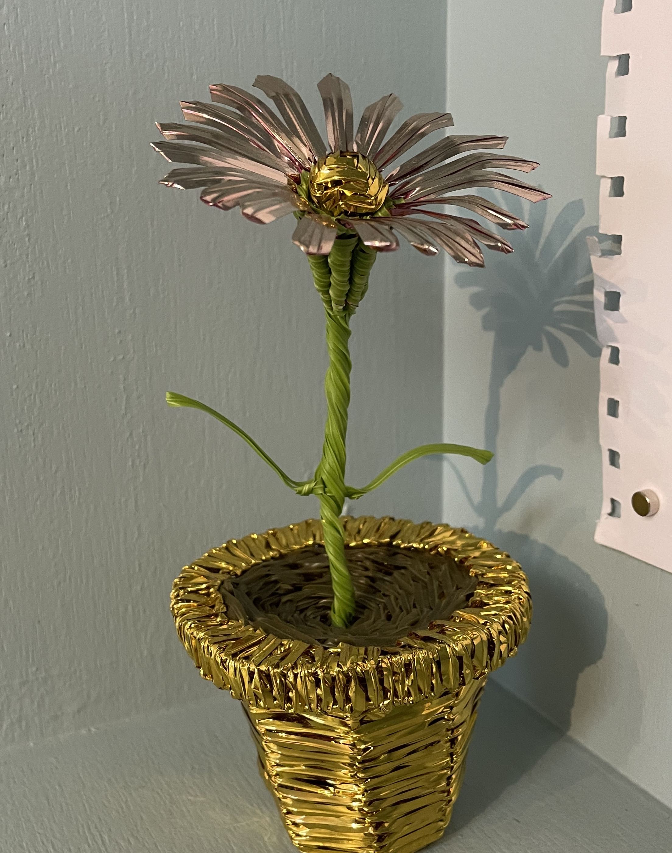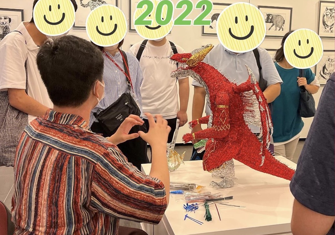 イブさんは2021KitaQ BRUT出品作家、展覧会ではビニールタイでつくった怪獣や鳥や昆虫、アニメのキャラクターまでお披露目されました。このワークショップでは小さなお花や動物などをみなさんと一緒につくります。