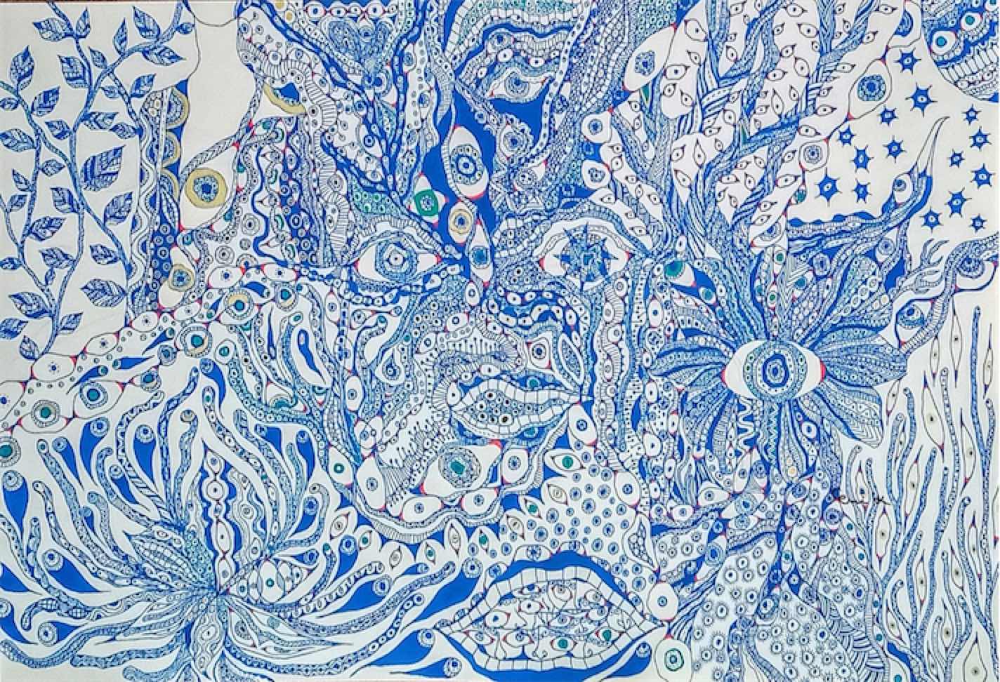 青森と熊本の8人の作家による展覧会は、Operation Tableが年1回開催する地域限定のアール・ブリュット展の第4弾として開催された。私自身初めての訪問だったが、会場は噂通り動物病院の手術室を彷彿とさせる水色の壁色が印象的だった。あの青緑の水色は、血液の赤の補色として、視力を守り手術のミスを防止する役割があると聞いたことがある。さらに手術台や無影灯などもある。「くせがすごい」と千鳥のノブ風につぶやきたくなる素敵な空間だが、その会場の個性にまったく負けない、いや逆に引き立つ、アール・ブリュット作家たちの作品の力強さに、あらためて感心させられた。