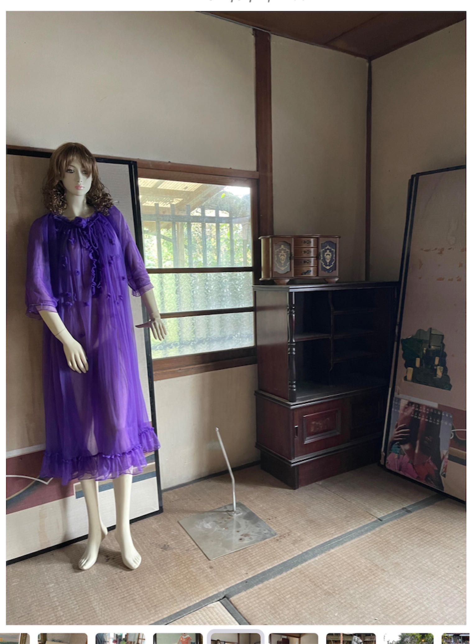 北九州市八幡東区で2011年よりOperation Tableという元動物病院の空間で現代アート・ギャラリーを主宰する真武真喜子が、同市若松区にあるキャバレーの元従業員寮であったベラミ山荘のたたずまいに惚れ込んで、1960〜70年代初頭まで筑豊で産出された石炭の積出港だった若松の繁栄を背景に、「そこで繰り広げられていたかもしれない昭和時代の女性の日常をドラマティックに演じる作品」を、岡田裕子、三田村光土里の2人のアーティストに依頼して生まれたのが、本展「もしも、ベラミで 岡田裕子・三田村光土里 女ふたり藝術ショータイム」という、この場所、この作家、そして観客たちがなくては成立し得ない、稀有の夢空間・夢時間のショータイムであった。