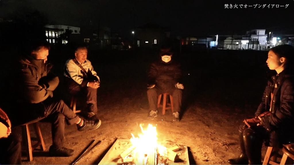 利用者さんと訪問看護Reafグループとの関わりでは看護の資源の枠の中で、利用者が精神的な病やその他の困難で起こる体調不良についても尊重しながら関わることの困難を作家は感じつつも自発性を待つことで制作は思うよう進まず、作家自身苦悩するが、焚き火で交流した地域の高齢の方―みやま市の図書館職員、旧上庄小学校校区会長、元教員などはそれぞれ作家を積極的に助けた。プロジェクトに関わった人がそれぞれの立場からそれぞれの人を支える行為が呼応し合う、生の喜びの根源に迫る、印象的な出会いがあった。