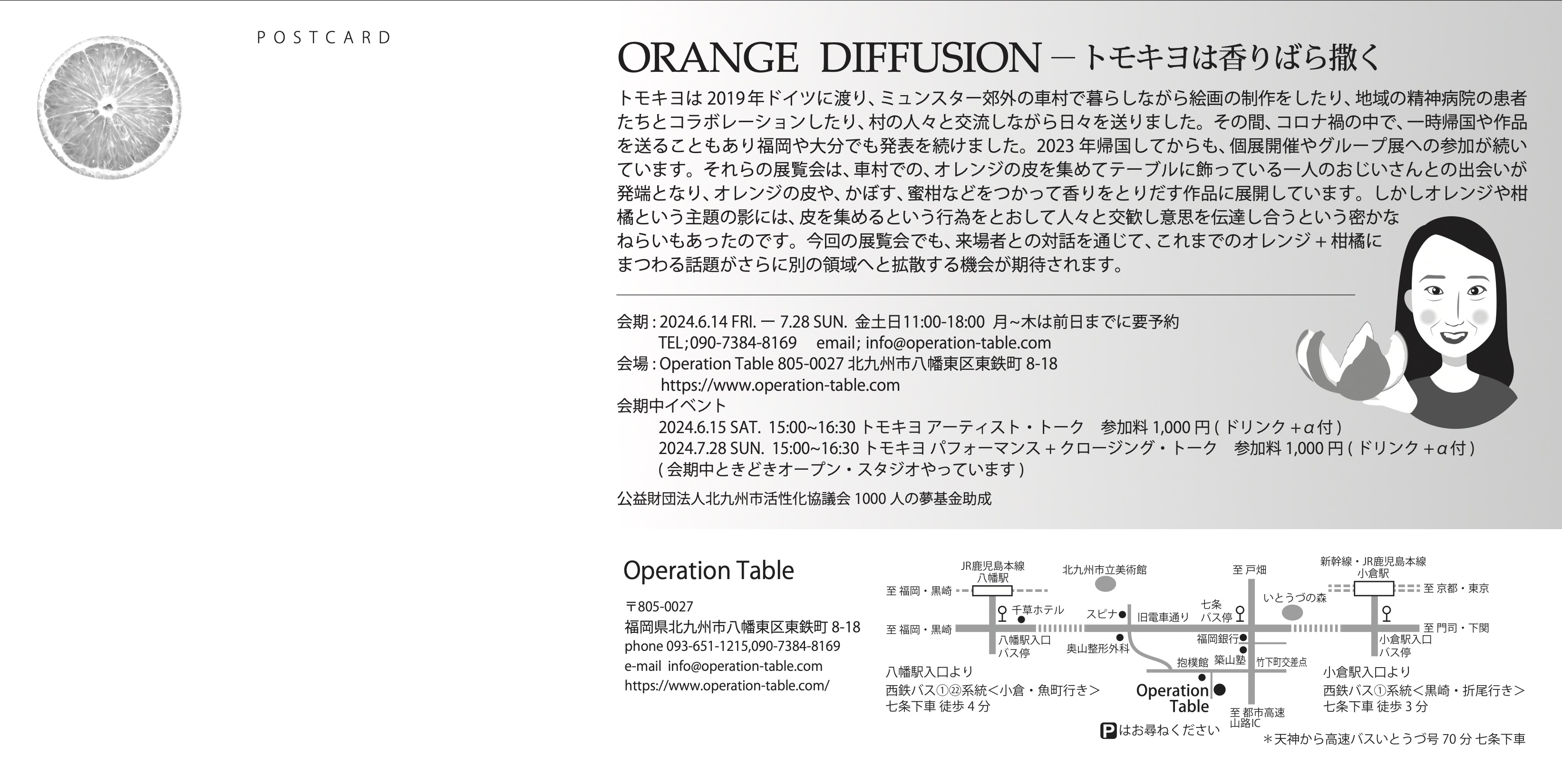 6月14日から開催中の友清ちさと個展「ORANGE DIFFUSION トモキヨは香りばら撒く」をご案内します。