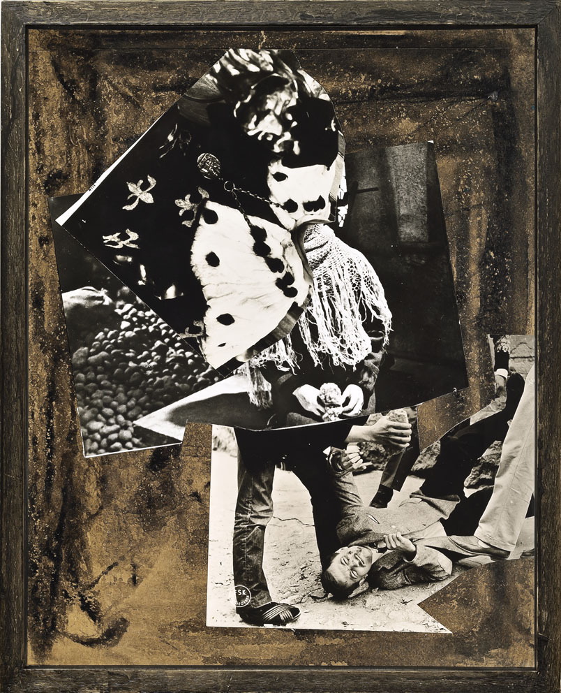 られた典型的なシーンを採りあげるがコラー ジュすることで、それらのイメージを別のレベルの意味