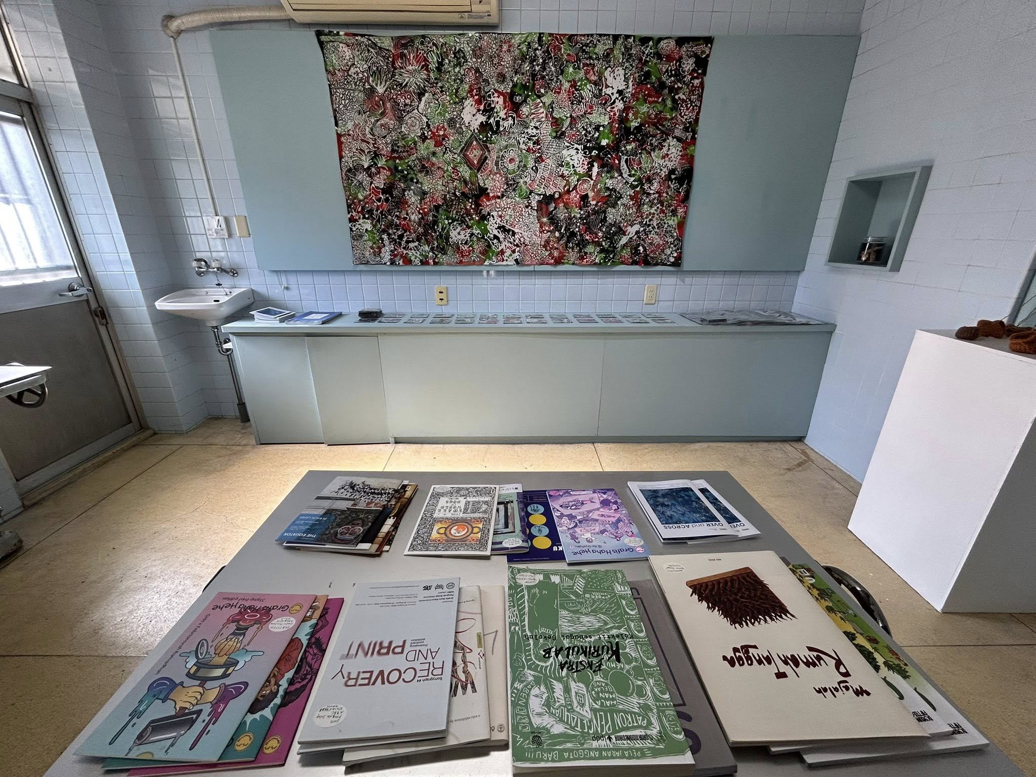 しかし本当に、すべての芸術家はその役割を担わねばならないのだろうか。自律性と個人性は、芸術家の価値を測る唯一の基準なのだろうか。もし彼/彼女が別の道を選び、スタジオの窓を開けて外を見ることを選んだとしたら——それはどう評価されるのだろうか。こうした問いは、「Over and Across」のための制作を進める中で、田中奈津子の創作過程に影を落としていた。純粋美術の領域でキャリアの大半を過ごしてきた彼女にとって、バティックという伝統との出会いは、これまでのアプローチとは対照的な芸術の在り方との遭遇であり、ひとつのパラダイム・シフトを意味していた。その出会いの場となったのが、南ジャカルタ・テベット地区に位置するバティックの制作・教育拠点、ルマ・バティック・パルバトゥである。