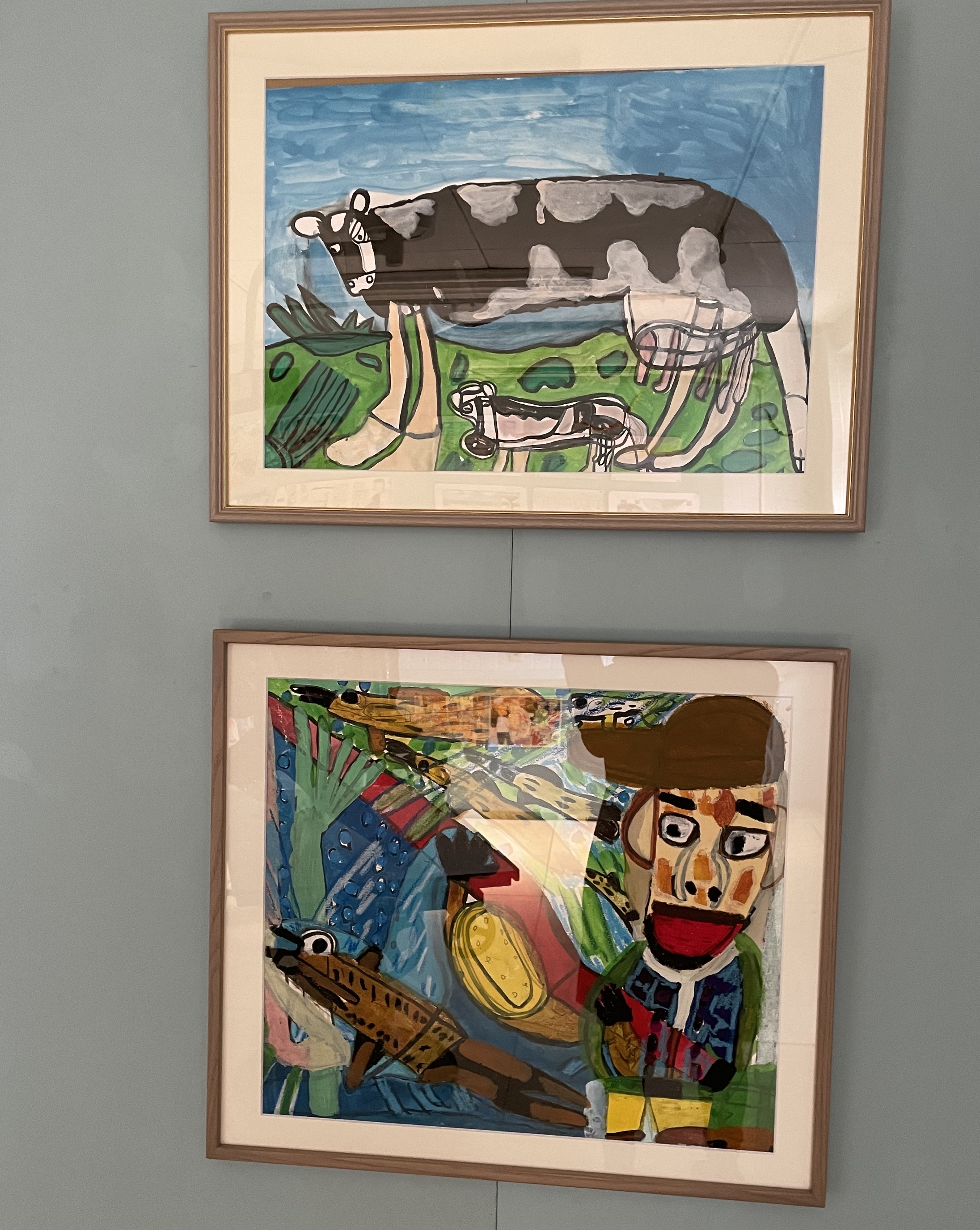 (ギャラリー西壁右パネル)サーフィン/牛/北九州の街/『電車の駅』/虎/『やかましい犬どころ』