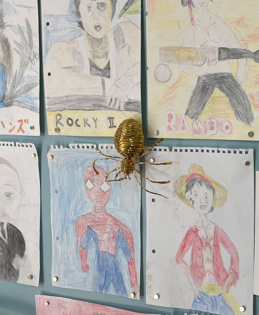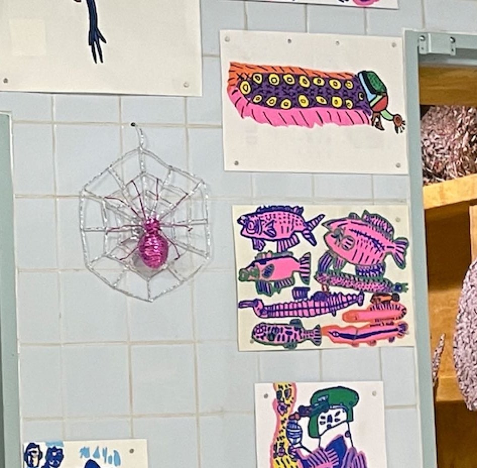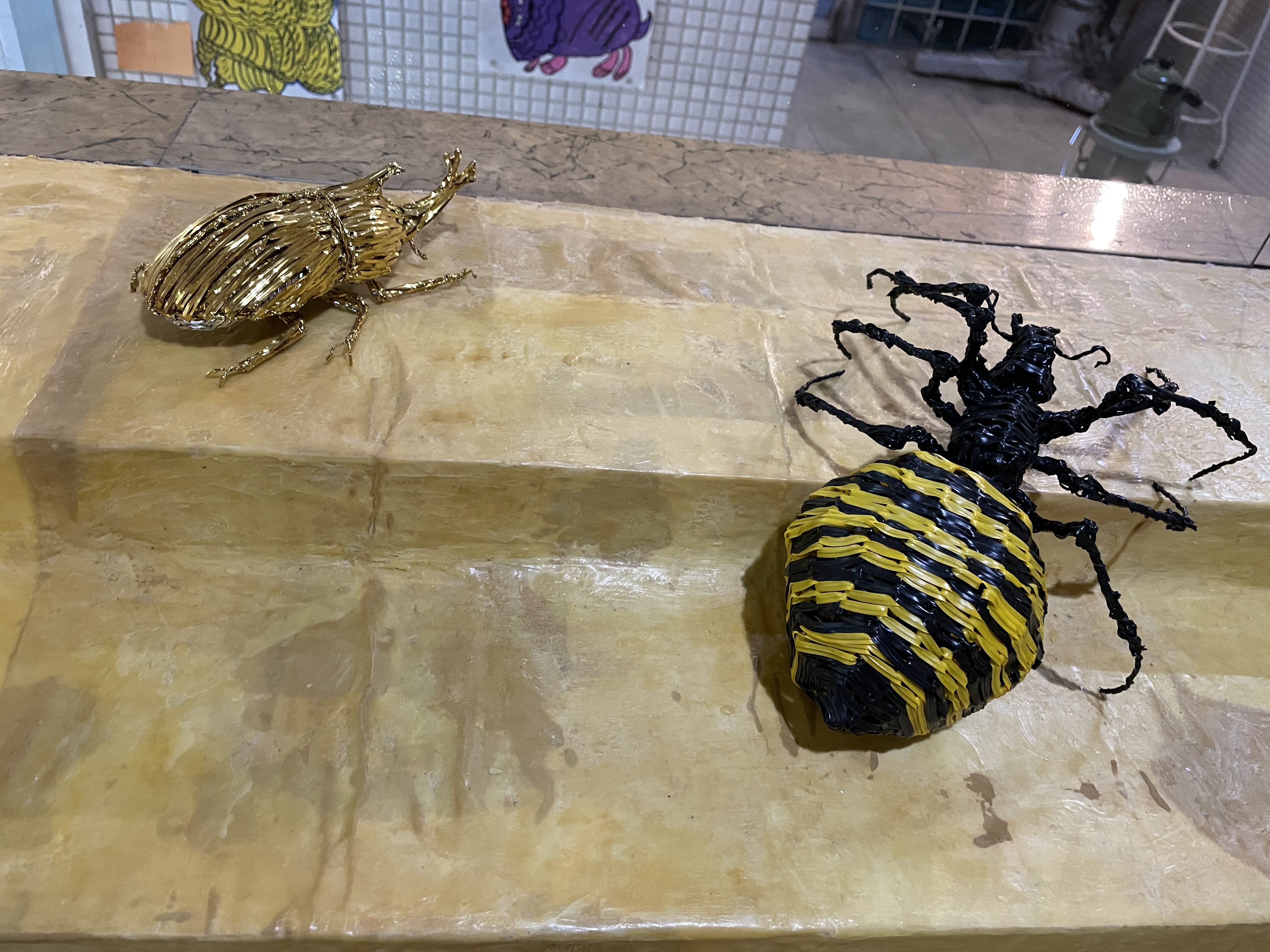 (壁各所)カマキリ/クワガタ/蜘蛛2種 (ギャラリー西側隅ニッチュ) マーガレット