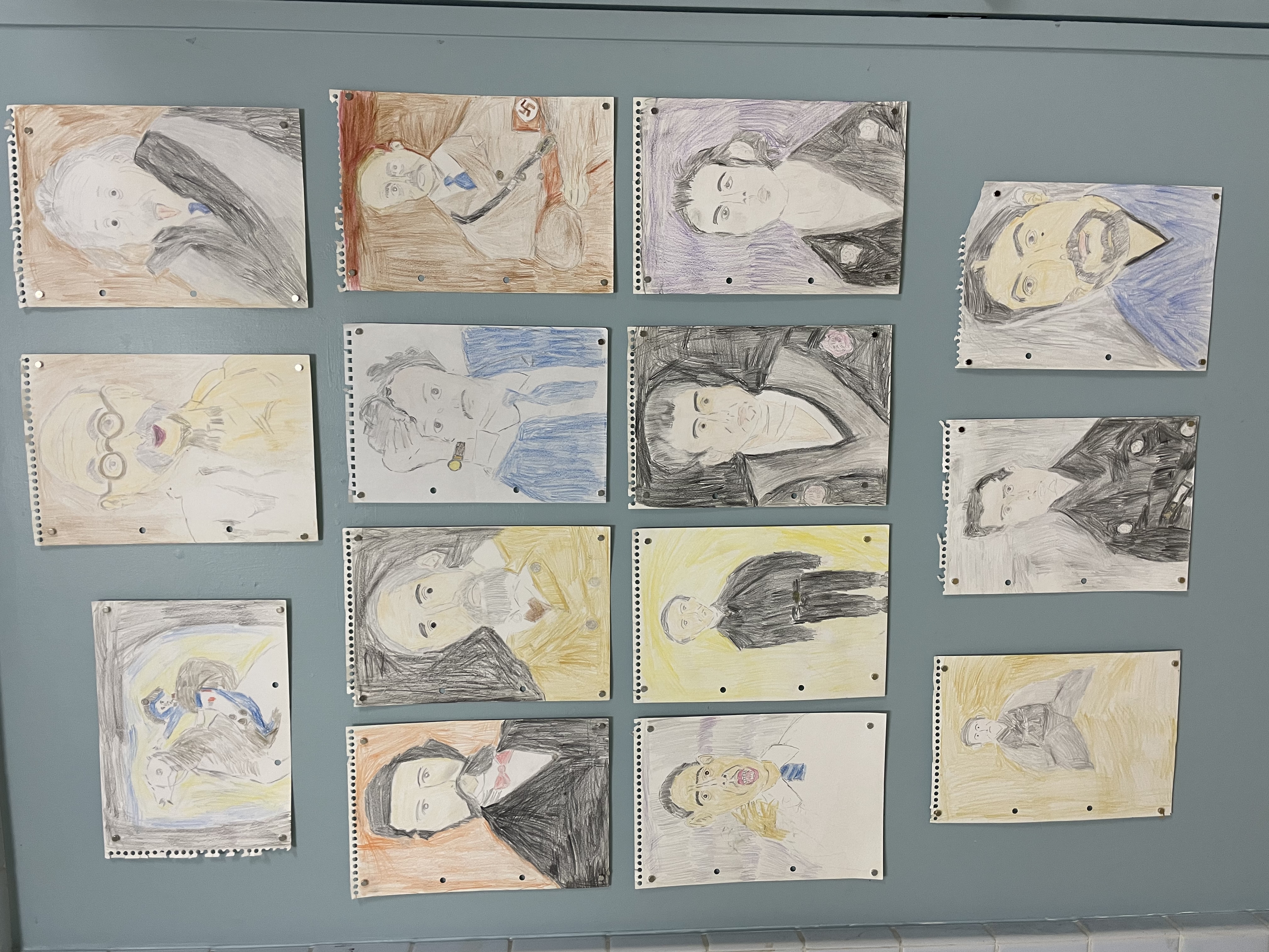 (ギャラリー北壁中):肖像画シリーズから14点;ナポレオン/ガンジー/アインシュタイン/大久保利通/伊藤博文/野口英世/ヒットラー/オバマ大統領/勝海舟/西郷隆盛/坂本龍馬/近藤勇/岩崎弥太郎ほか