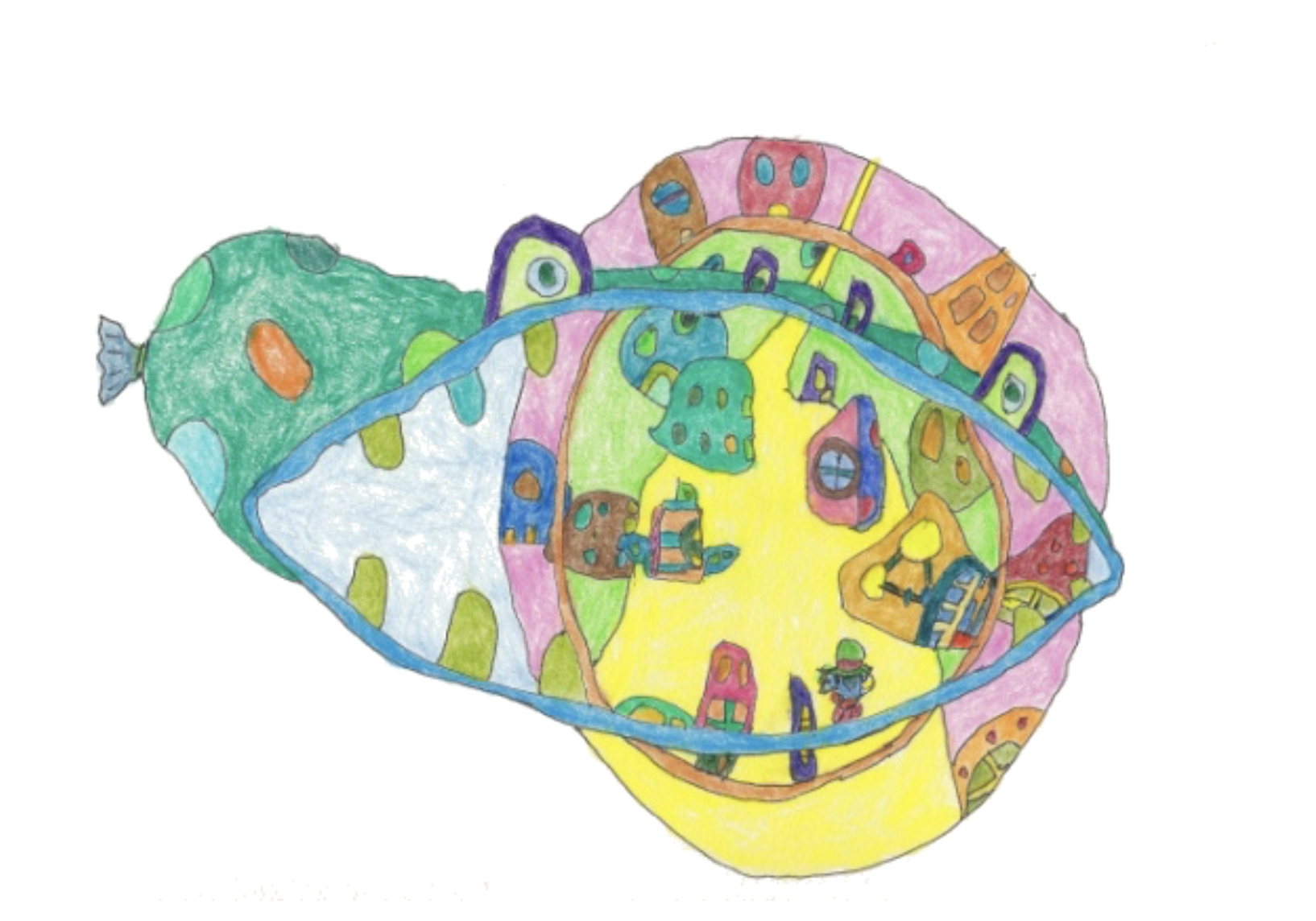 (第3室西側壁/パネル): 街/クジラ/さかさま