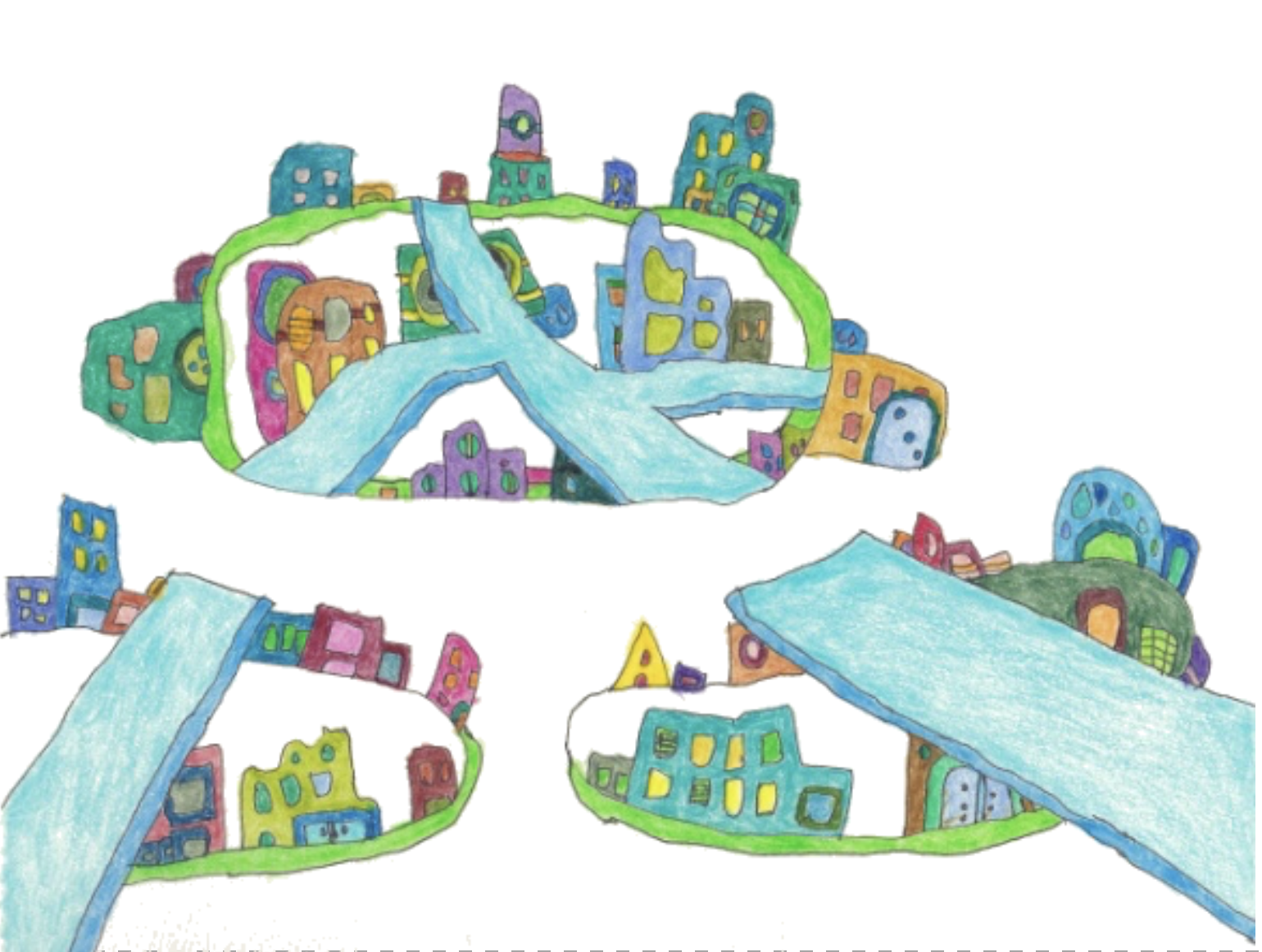 次図版左から「地球」 「あしたへ」 「アトランティス」 「緑の街」