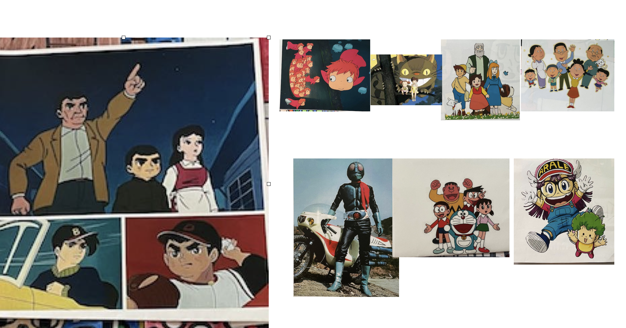 (ギャラリー北壁右):マンガ・アニメ・映画のヒーロー&キャラクター21点;ビートルズ/シザー・ハンズ/ロッキー/ランボー/スパイダーマン/ワンピース/北斗の拳/力石徹/ファイティング・ニモ/るろうに剣心/ちびまるこちゃん/名探偵コナン/じゃりんこチエ/ドラゴンボールほか