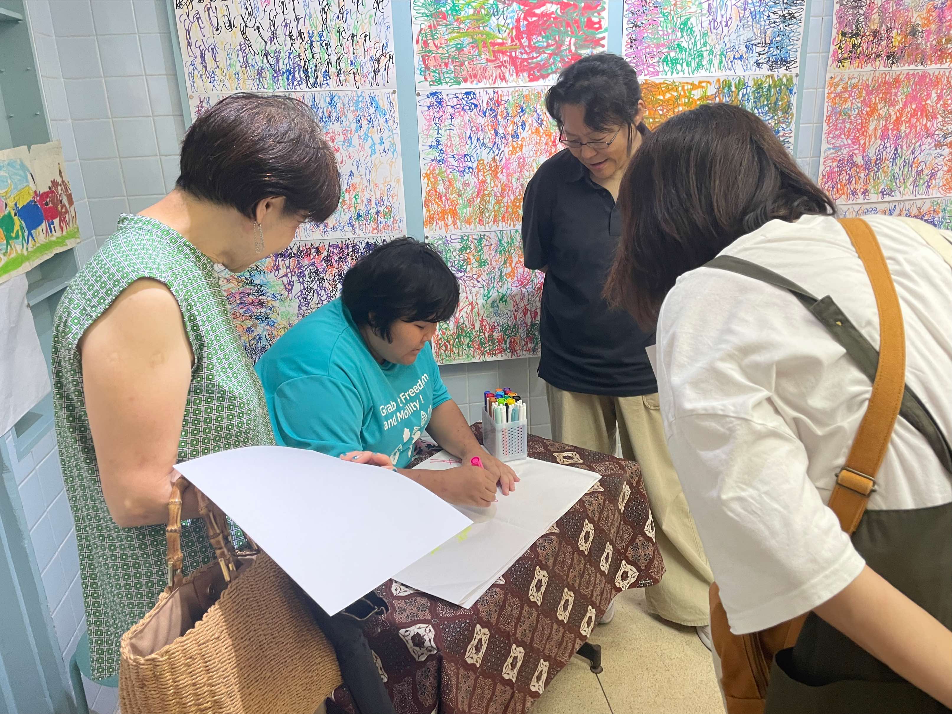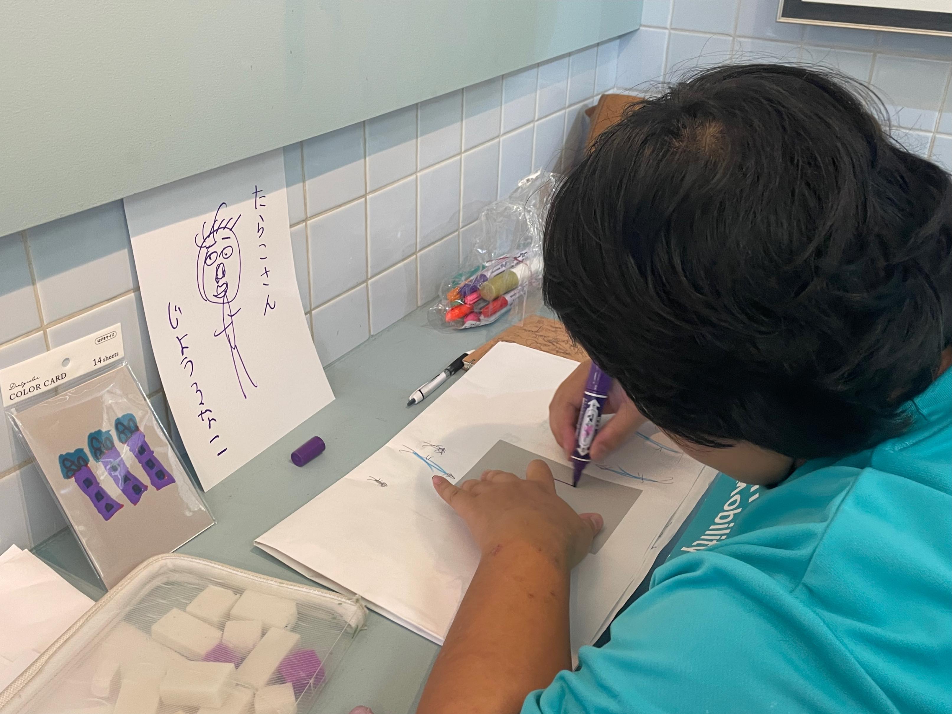 城瑠那子さんは来場者の似顔絵も描いた