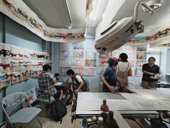 お二人が会場にて制作を公開しています。