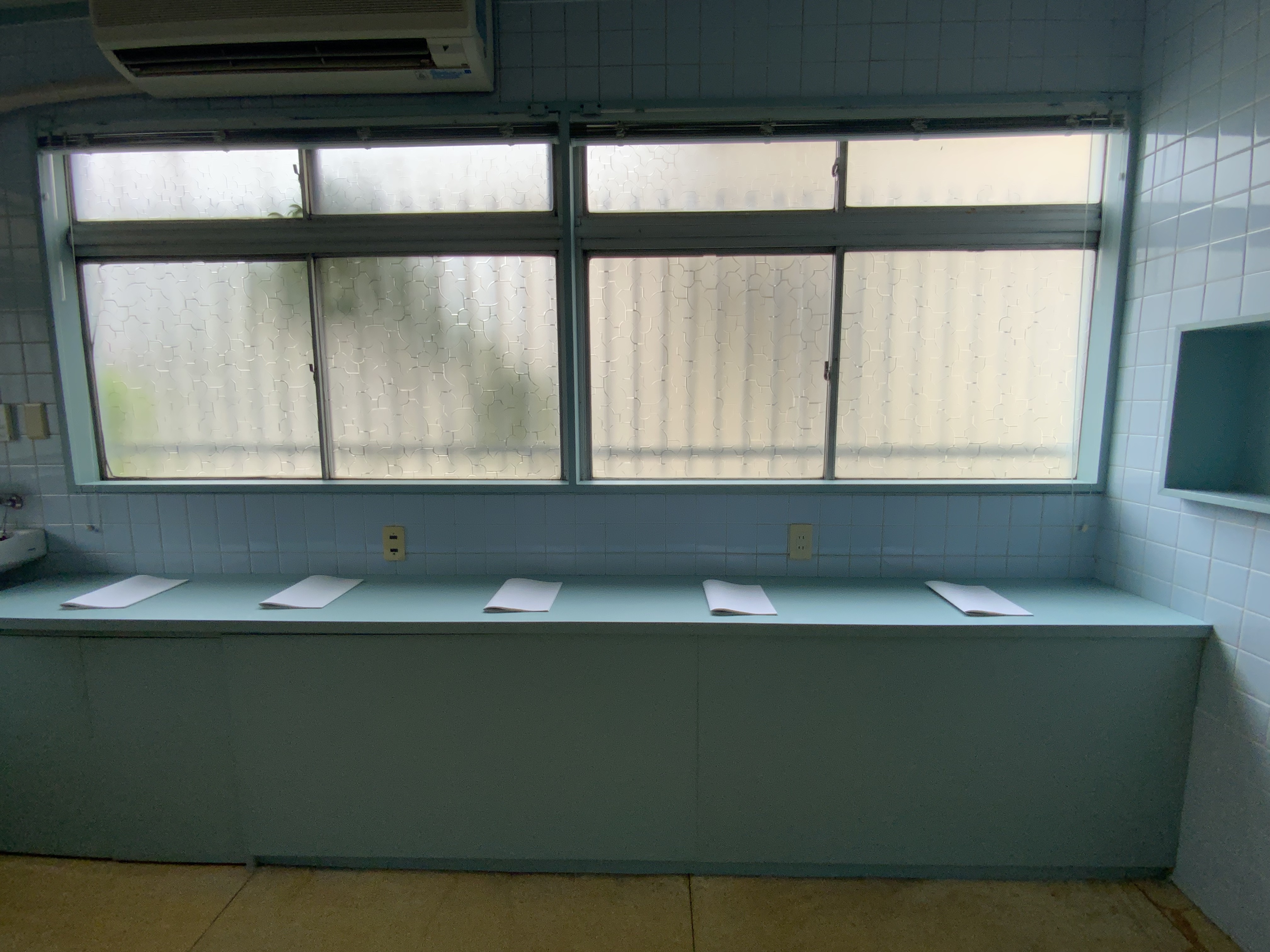 搬入当日、水谷さんは会場の隅々を磨きに磨き、空間をつくり上げていった。そんな水谷さんをじっくり観察もしたかったが、私も空間を磨くことにした。色々なことを考える間もなく、そこにあった痕跡を剥ぎ取っていったり、拭きあげたりすることに、私が絵を描く行為と重なるものがあった。なくす事と表す事の同時性を感じた。