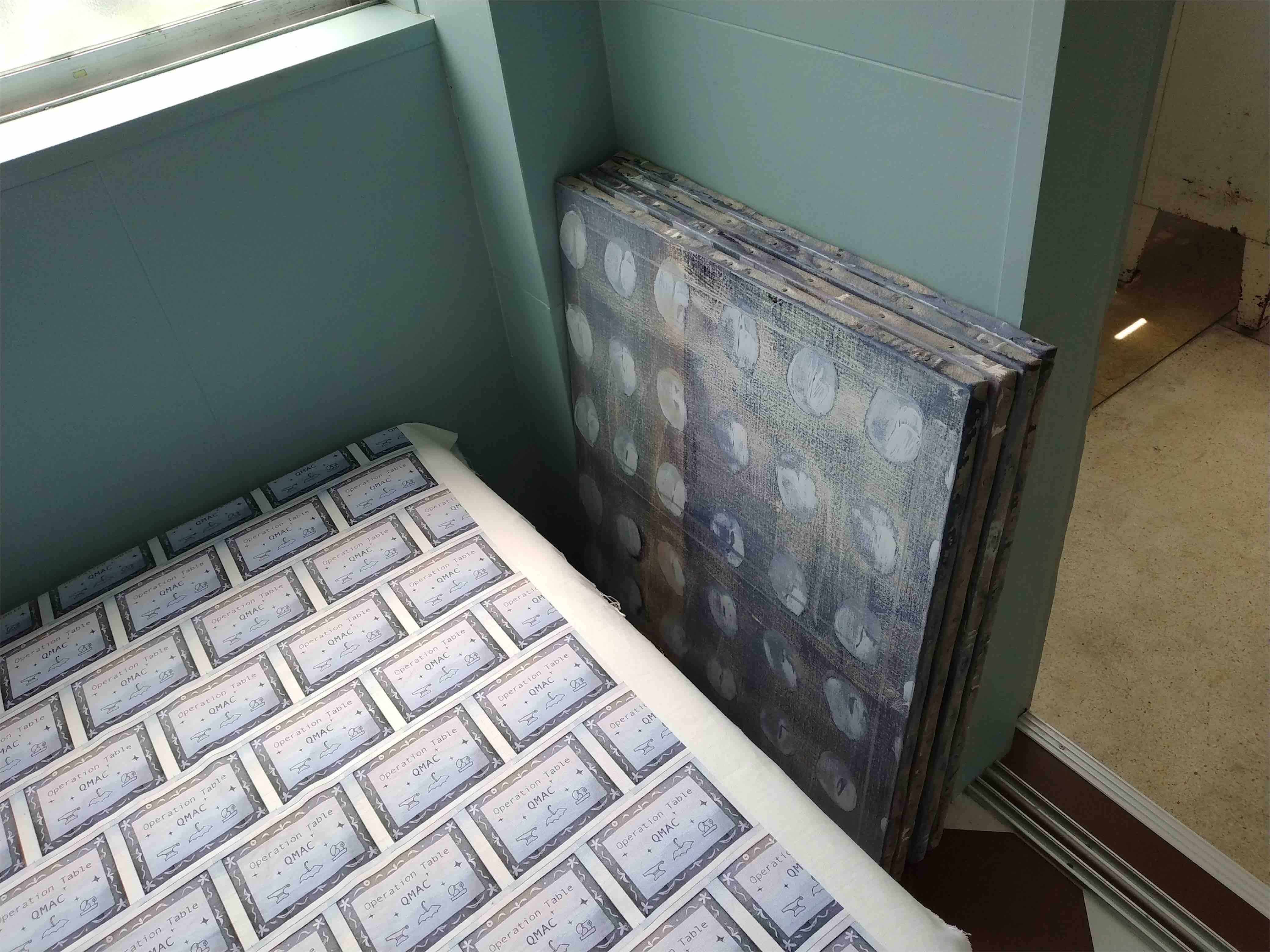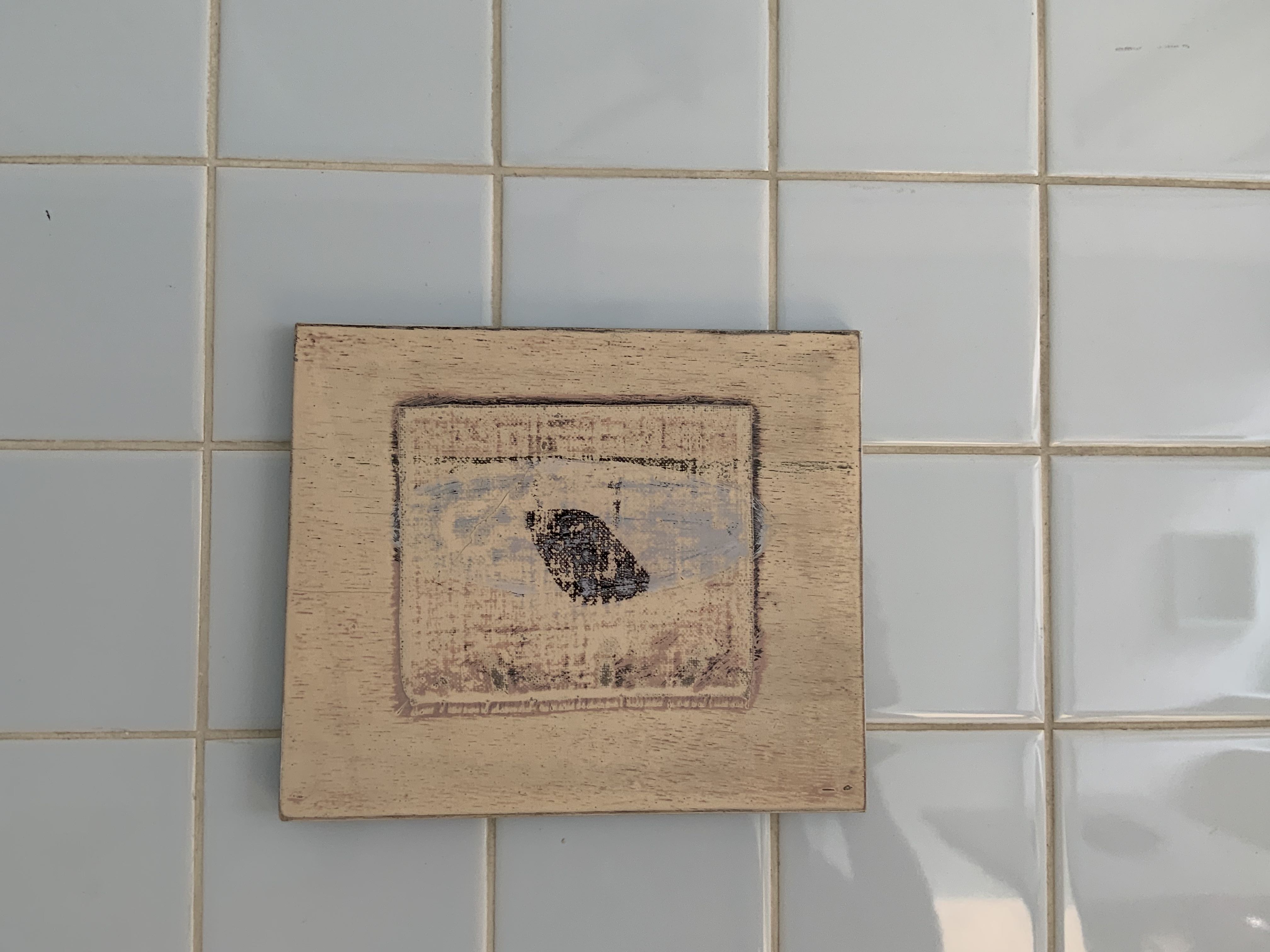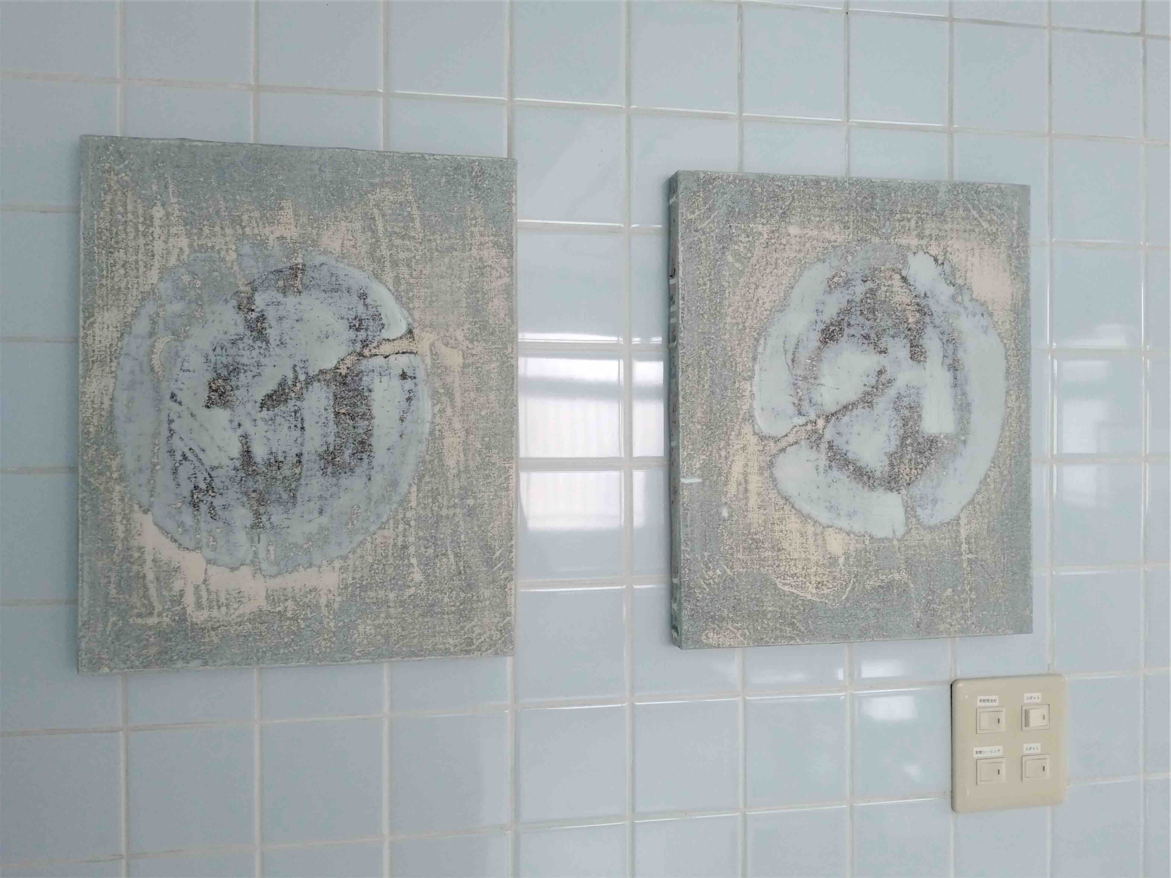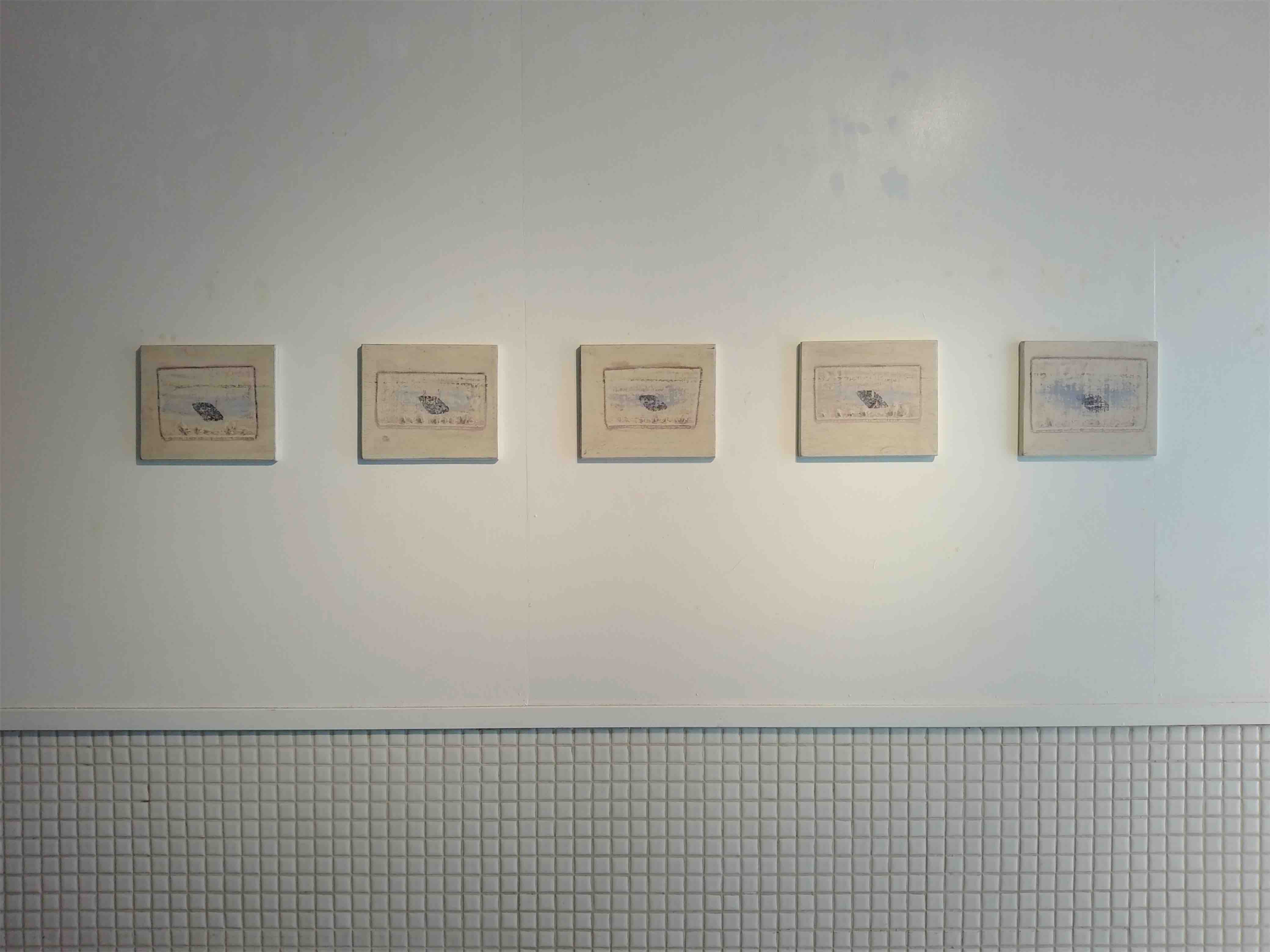 Operation Tableに入ってすぐのところにあった、小さい作品5点、それが展覧会が始まる3日前かな、一週間前かな、直前までできてなかったんです。私は本当に焦って、一緒に掃除するのを欠席させてもらって、最後の仕上げをしていたほどです。私たちが会話をしていく中で生まれた作品は、どうしても欲しい、Operation Tableで展示したい、と思っていたこともあり、展覧会オープン直前まで制作しました。