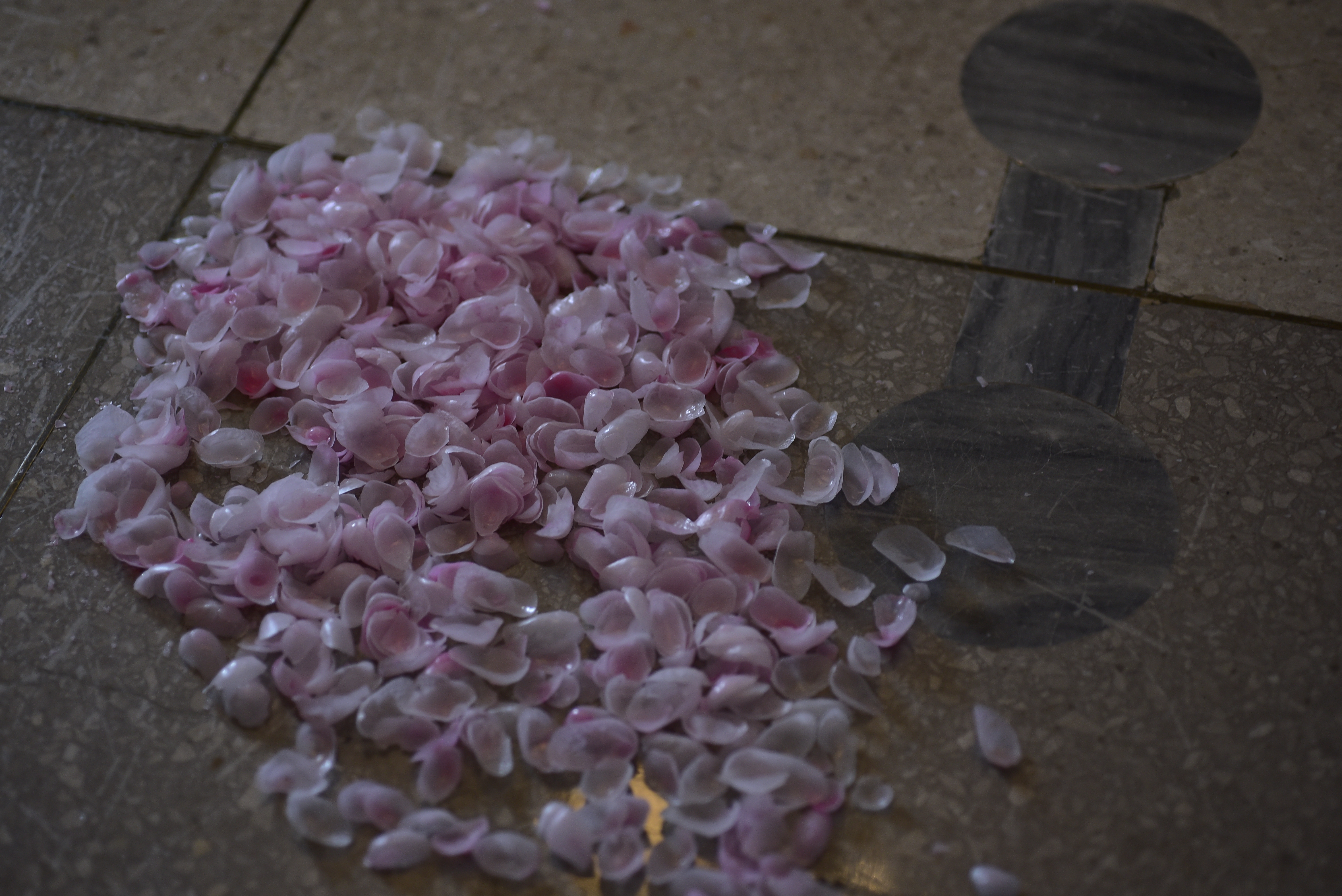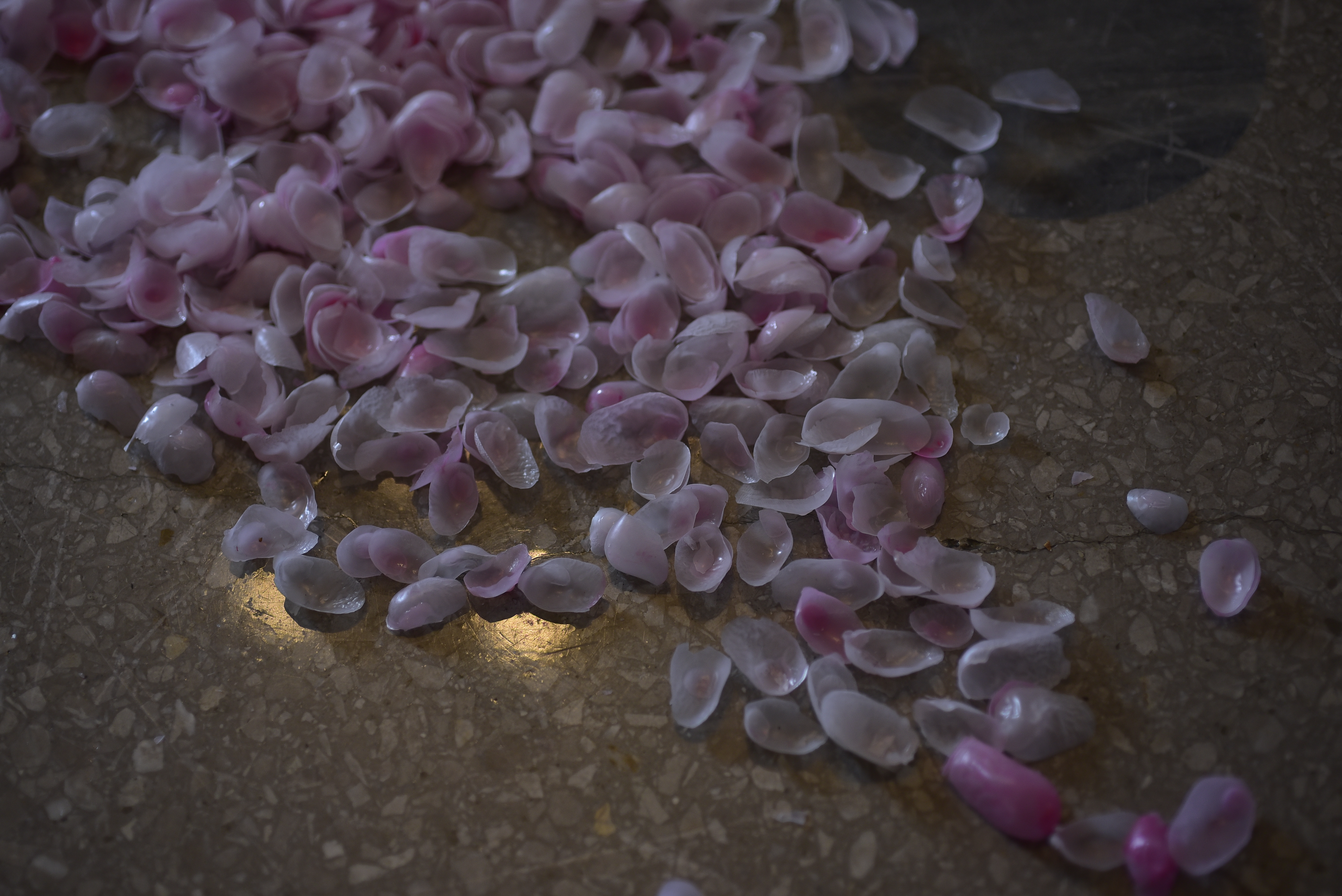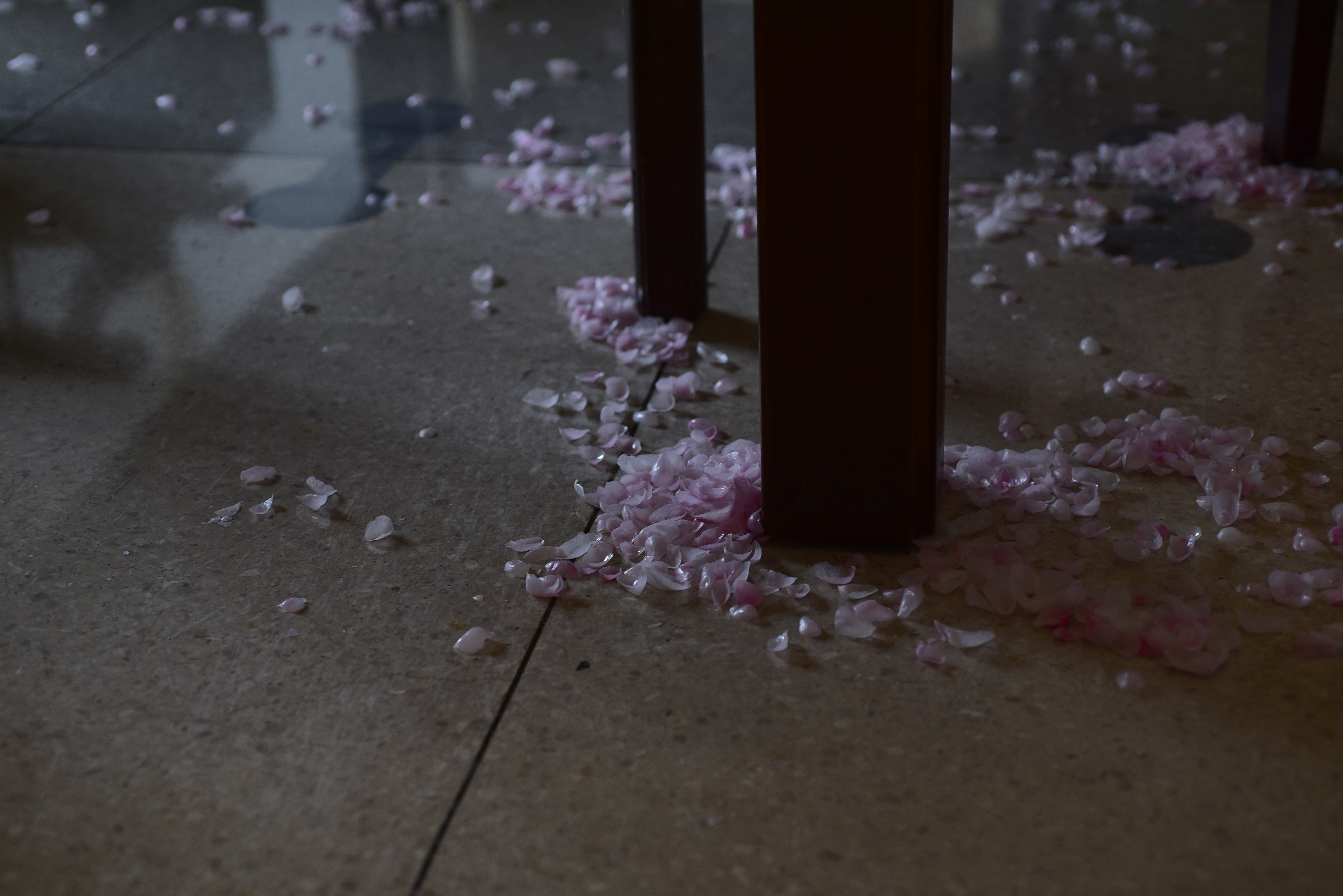 オープニング当日は、パフォーマンス会場となるため、ギャラリーに撒かれる花びらはやや制限されますが、その後、日々数を増やし、桜ほころび花散る日々に向けて、花溜まりの広がりが変化していく予定です。