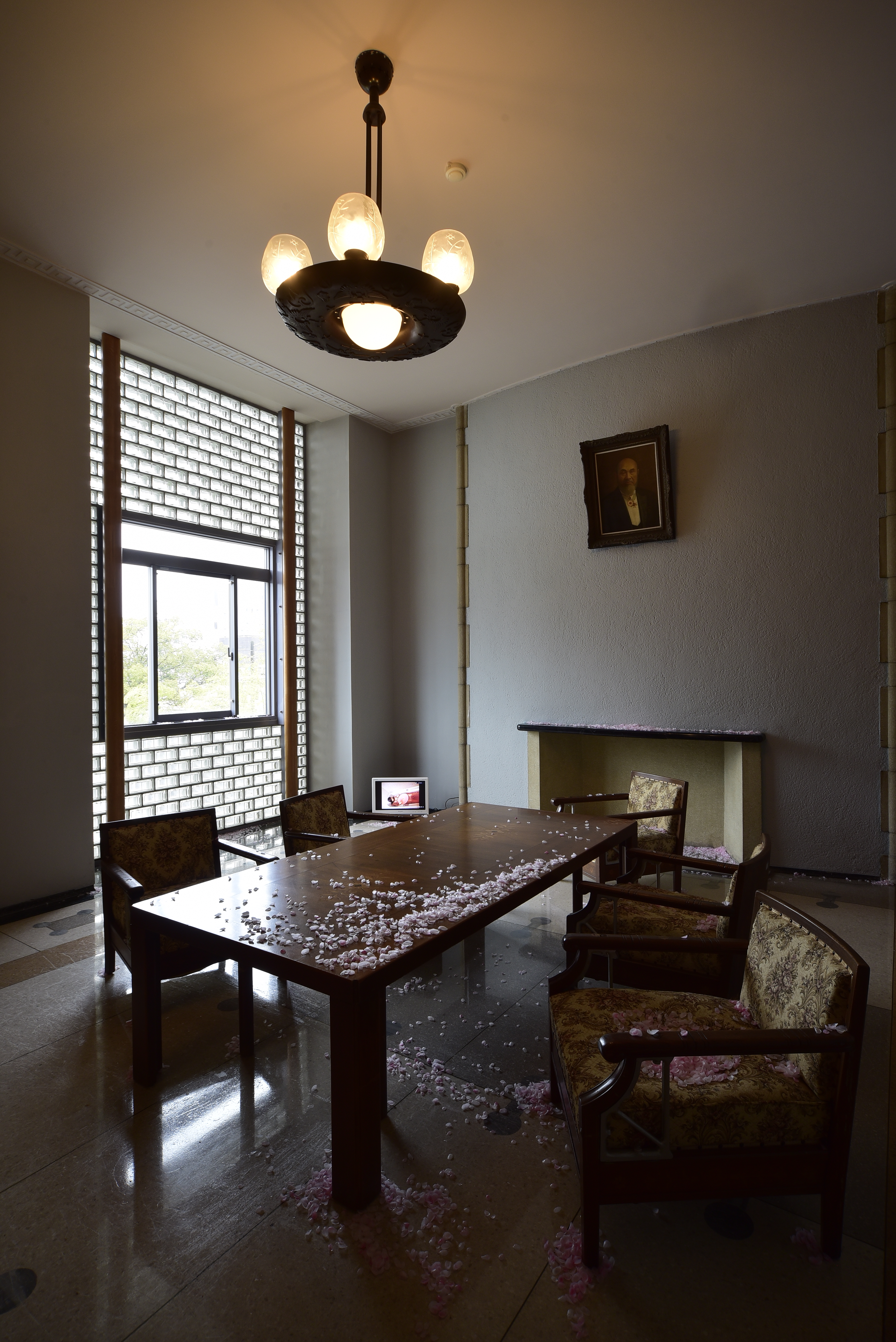 山口に居住地を移して以降は、山口や北九州を拠点に活動していますが、昨年11月に山口市の山口県旧県会議事堂を舞台に2日間だけ開かれた個展「ロンド~繰り返し見る夢の続き」は、これまでの作品を集大成した「夢のように現うつつのように 繰り返しては何度も現れる幻影 まぼろし夢の断片を繋ぎ合せて紡いだ作品集」となりました。重厚な議員会議室の広い一室が夜の遊園地の映像によって光と幻影に乗っ取られ、権力の象徴が夢のように軽やかに回転していく光景は、観る者をうっとりさせながら、場所の意味を連想し冷笑も誘ったものでした。