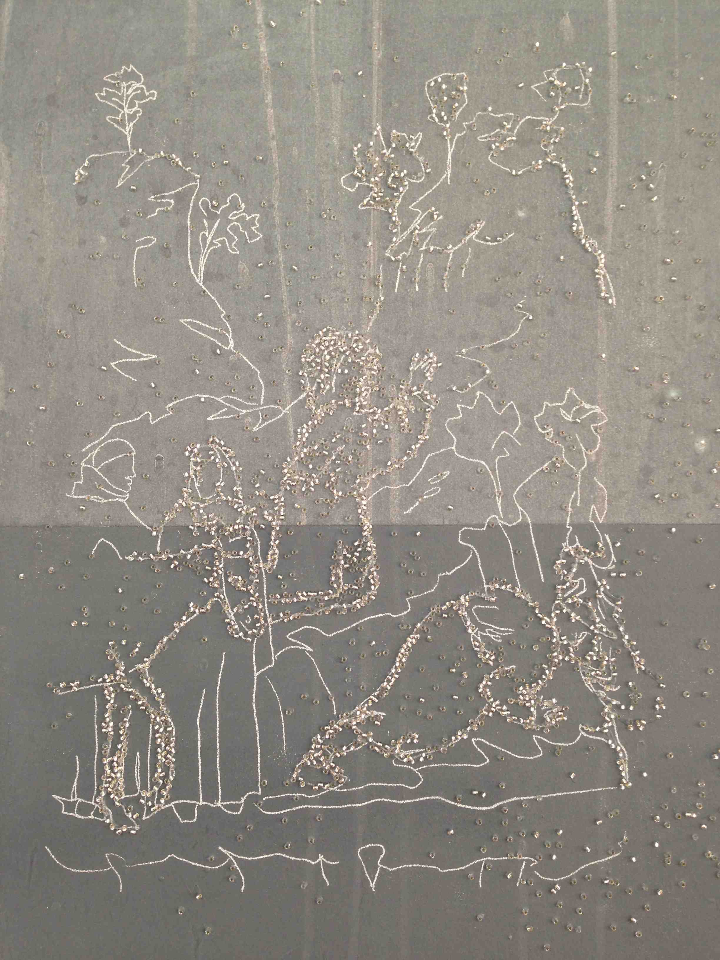 そこではビーズやパールの欠片が飾る光の粒子が戯れています。世良によれば「敬愛