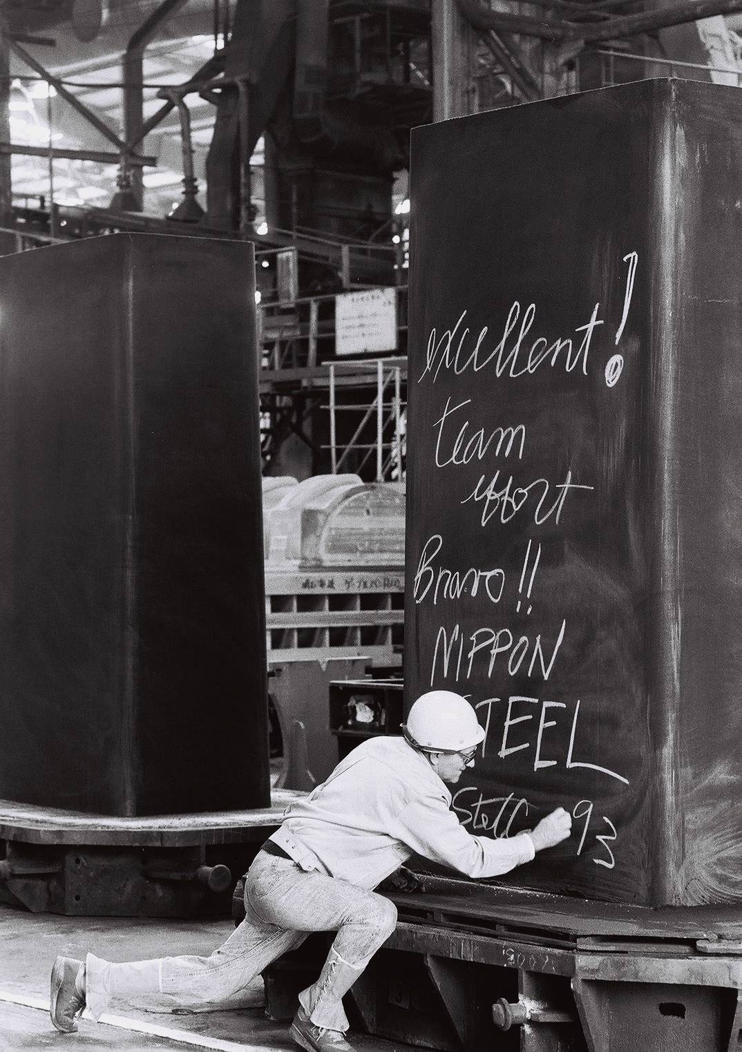 ・「国際鉄鋼彫刻シンポジウム」公開制作時、新日鉄に対するステラの感謝 © Yuji Shinomiya