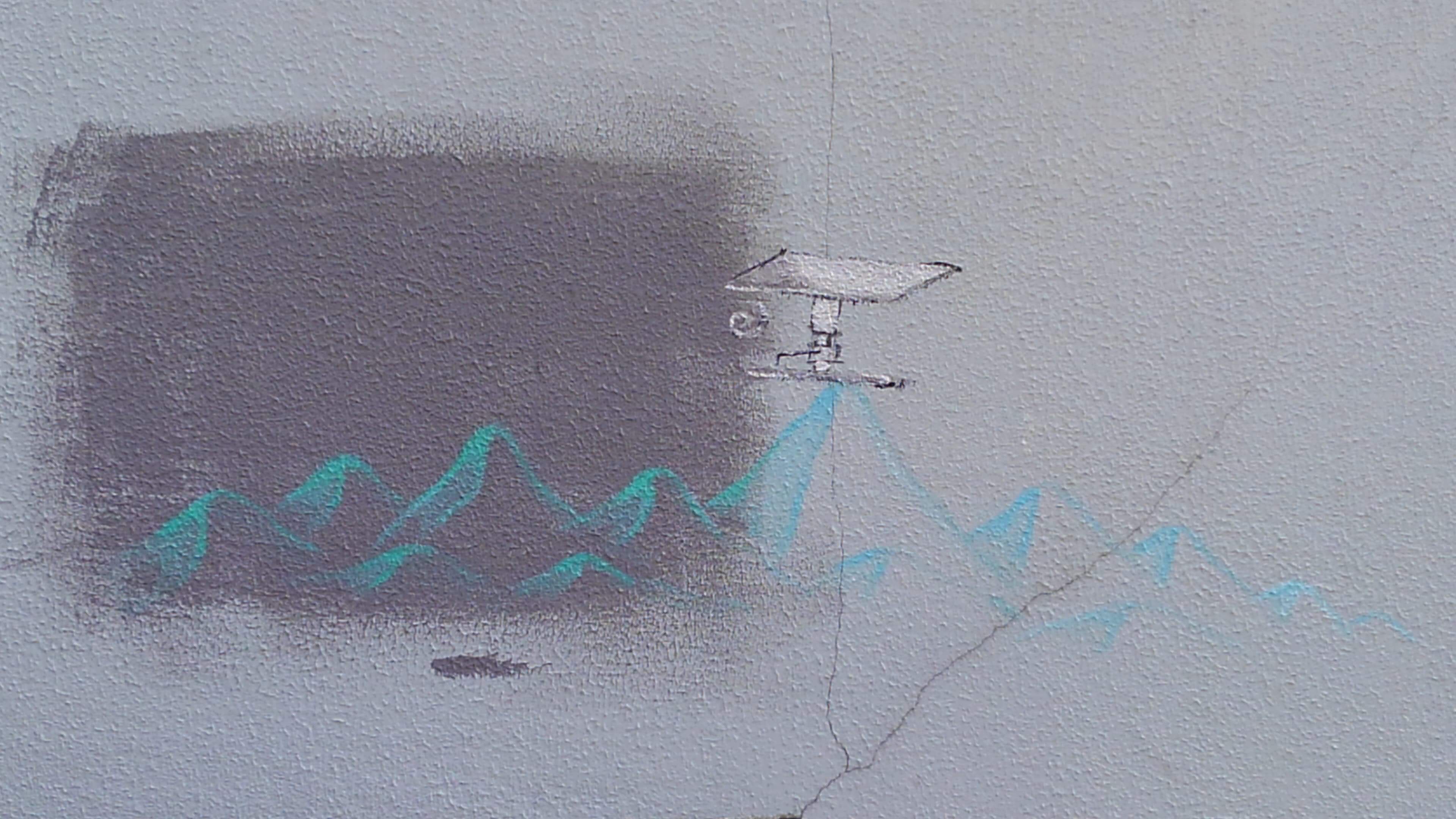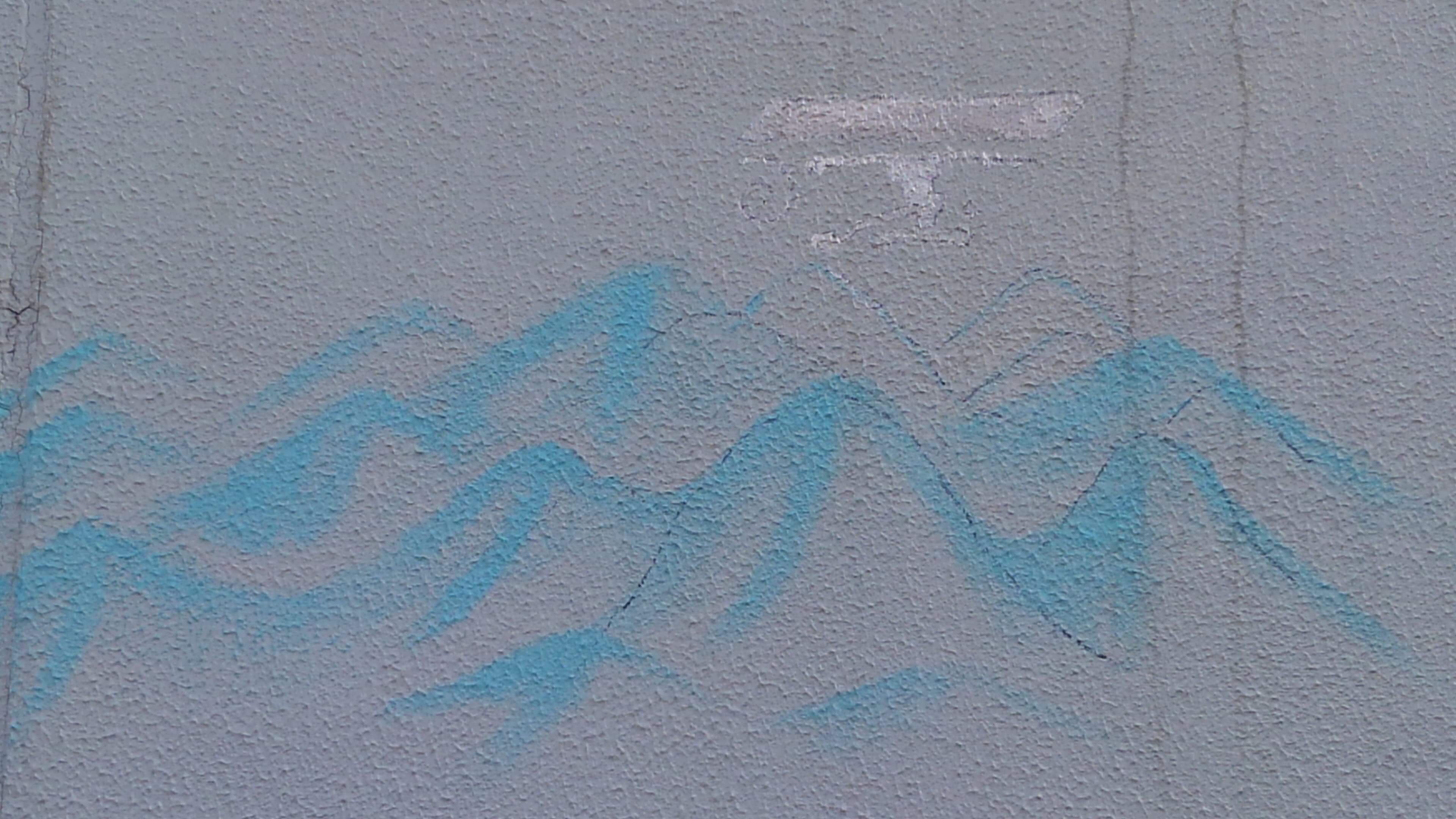 展覧会オープンの3日後、友清は帰省中の福津市から再びOperation Tableを訪れた。2015年「漂着」展に参加した際に描き残していた壁画を完成させるためである。だが未彩色だった部分を完成させるのみでなく、もうひとつの壁画を描き加えることになった。「FK28Z(6)-bis」のサブテーマといってもよい「無闇/闇雲」へと関心が移行し、今度は「闇雲山脈」を描く意思が顕れた。新たな作品は外壁の左端に描かれ、また写真では右端の水色の山脈も「漂着手術台」として完成された。