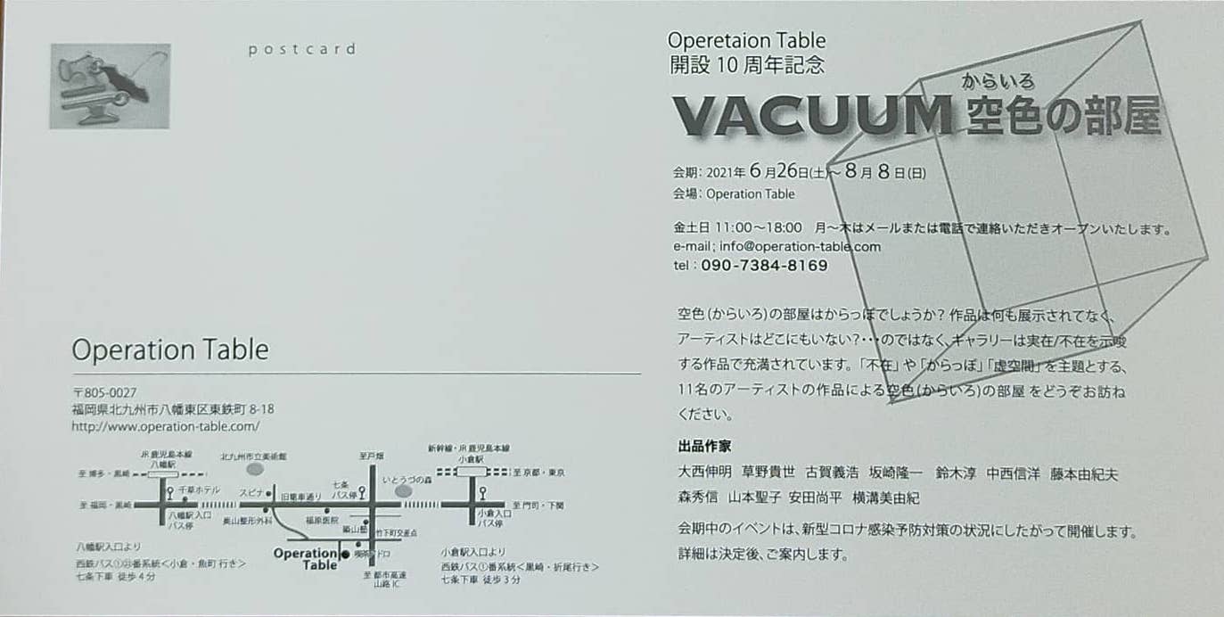(註)「VACUUM 空色(からいろ)の部屋」は、Operation Tableの10周年を記念する第2弾の企画展。第1弾は、「DECADE; Operation Table/QMAC」。