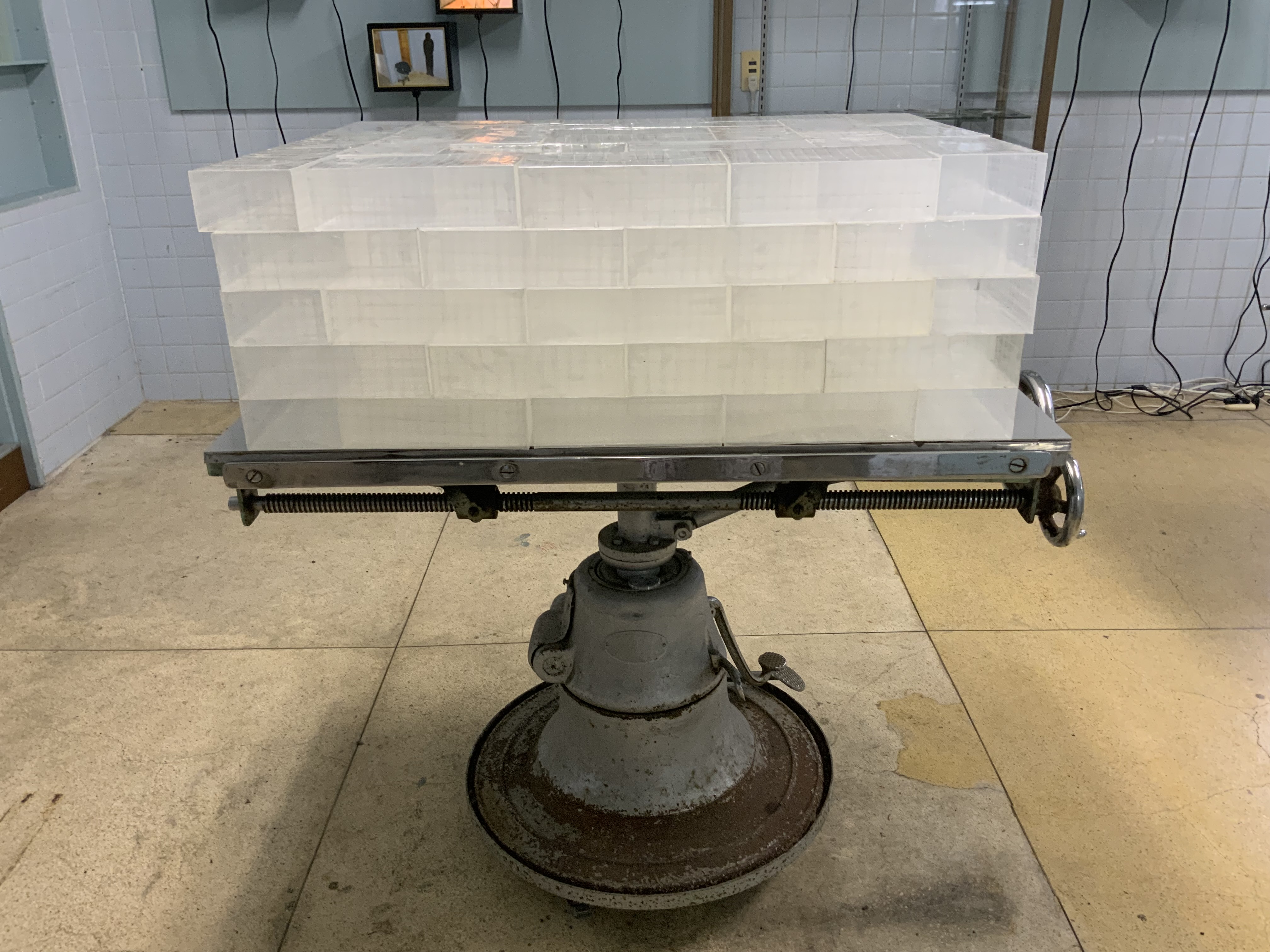 さて、これら多様な作品が並べられたオペレーションテーブルの内壁は(外壁も)、空色=からいろだ。そのことは、イヴ・クラインが1958年にパリで実行した通称「空虚展」を思い起こさせる。クラインは外壁を青色(IKB)に塗ってギャラリー内には何も置かず、訪れた客は青色のカクテルをふるまわれて空っぽの空間を鑑賞した。もうひとつ、1963年の東京、新橋駅近くの内科画廊で開かれた「不在の部屋」展がある。評論家の中原佑介が「反芸術」の旗手たちを招き、彼らは日用品を用いた作品、ガラクタの山で画廊の空間を満たした。