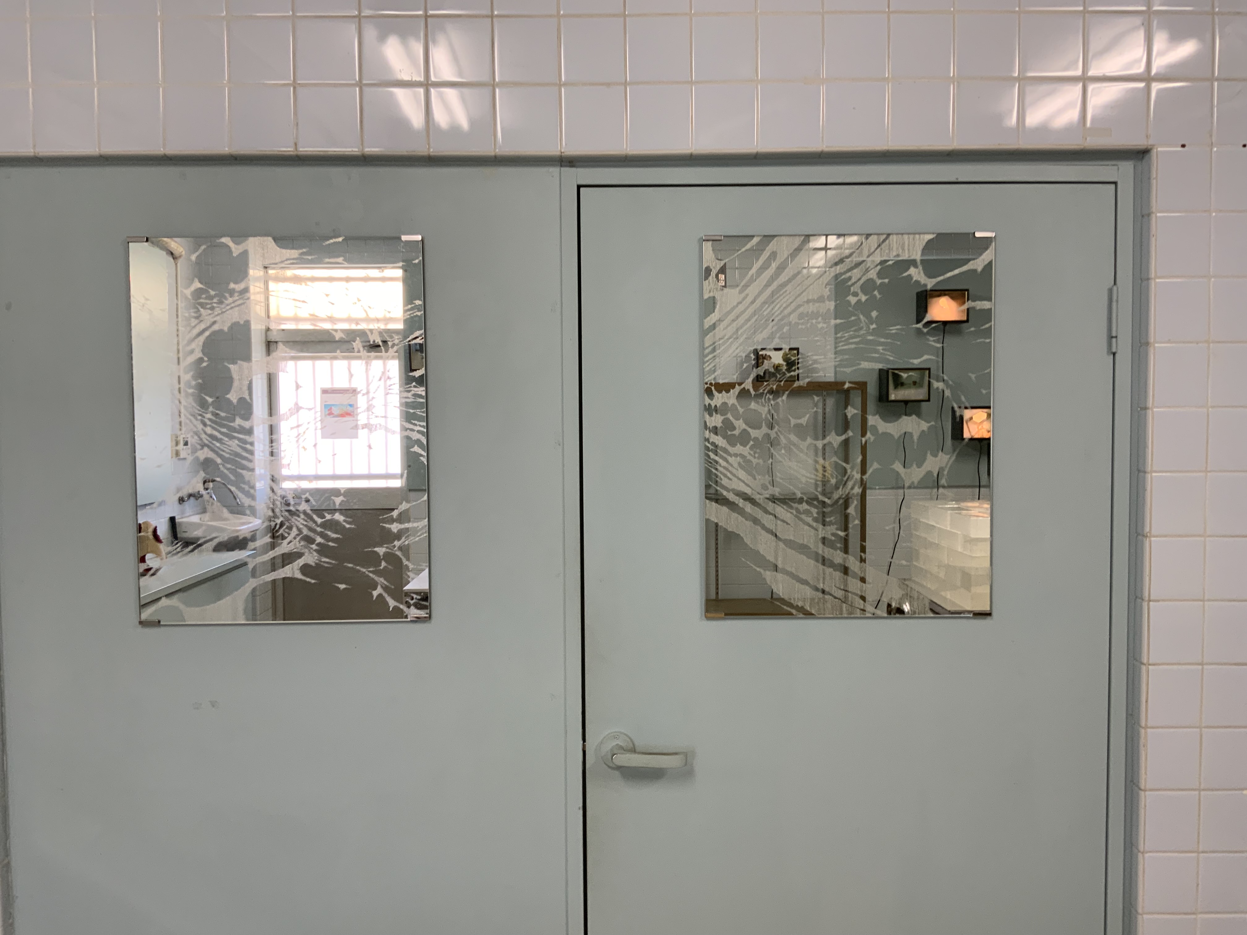 中西信洋 "Stripe drawing on mirror-Sayagatani 1-6"engraving on mirror 2011