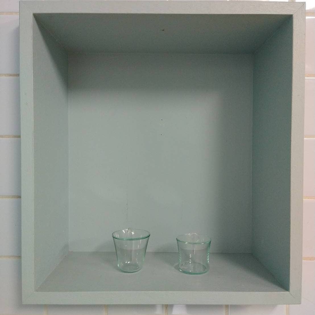 そのふたりの作品の間に、安田尚平の清楚なたたずまいのガラス器が忍び込ませてあった。立方体をしていて中が空洞という点では、横溝美由紀の作品も同じ構造を持つ。だが与える印象は全く異なっていて、安田の作品が虚の受け皿としてあるのに対して、横溝のそれは虚を内に抱えてボリュームを持つ。おそらく横溝の意図は形式の方にあるのだろう(例えばボックスの輪郭線がつくる水平と垂直)が、周囲との関係が多層的な見方を導いていた。