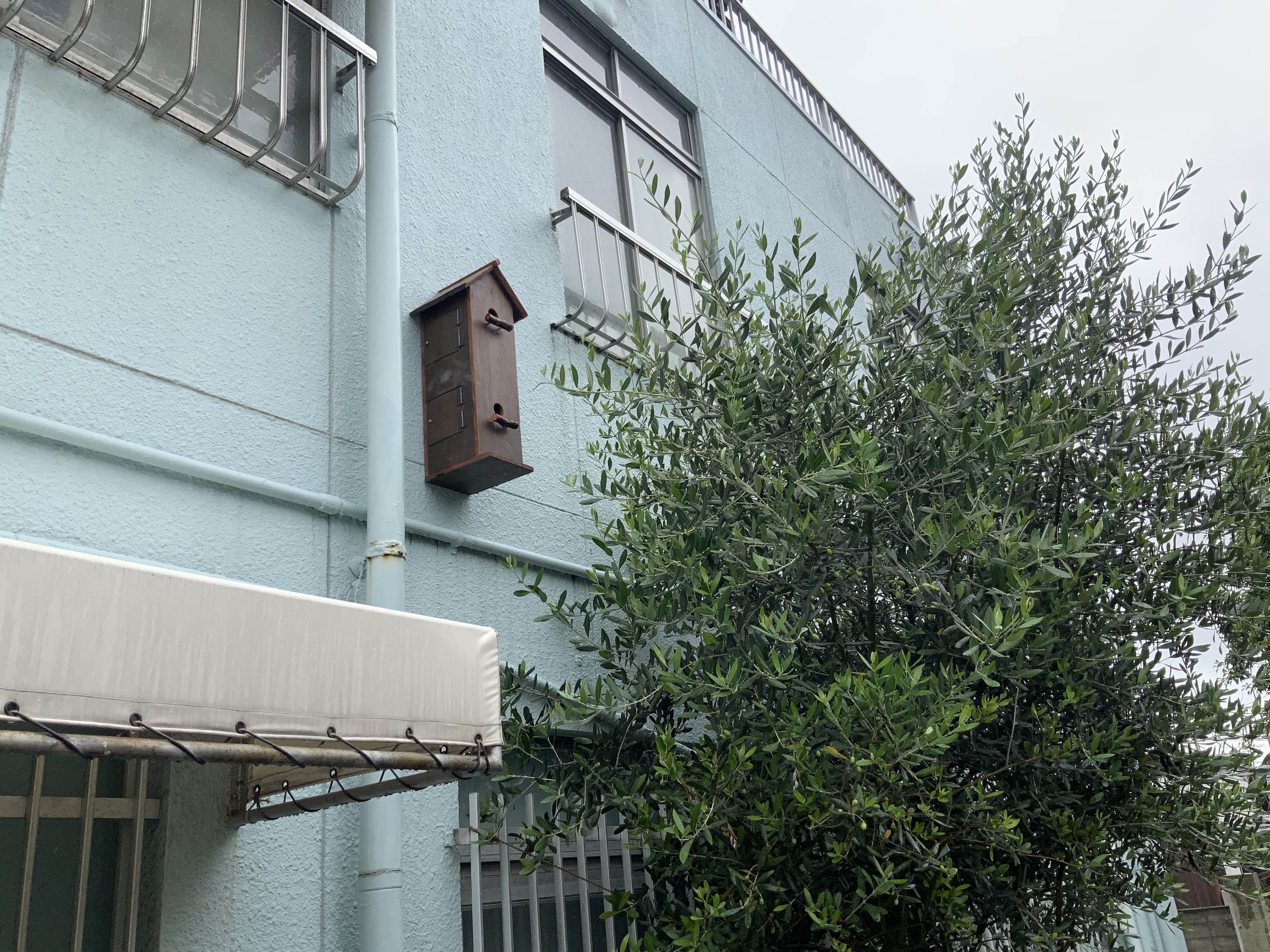 会場で一番大きな壁を占めるのが、鈴木淳による作品だ。小さなライトボックスがランダムに並び、絶妙な間合いで点滅している。ライトボックスには、出品作を撮影し作品の部分だけを切り抜いた写真がはめ込んである。展覧会を主題としつつ、批評性よりもおおらかなユーモアを感じさせるたたずまいだ。その裏側の壁、細い通りに面した外壁には坂崎隆一のつくった巣箱が取り付けられていた。巣箱は鳥の入れないつくりになっているようで、常に空っぽ。近くの扉には張り紙があって、「申し訳ありません。鳥たちはみんなもう一つの巣箱にいるようです」と書かれていた。