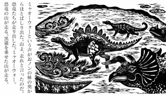 そんな「命へ深入りする目と心」を持ち得たからこそ、石牟礼道子さんの文章と共振し、作品化することができたのではないかと『水はみどろの宮』に付けられた挿絵を見ながら思う。ことに主役が猫と犬と少女だったということで、もともと猫好きの描き手はもうどっぷりとけものたちの中に入り込み、渾然一体となって嵐に打たれたり水をくぐったりしているような躍動を見せる。