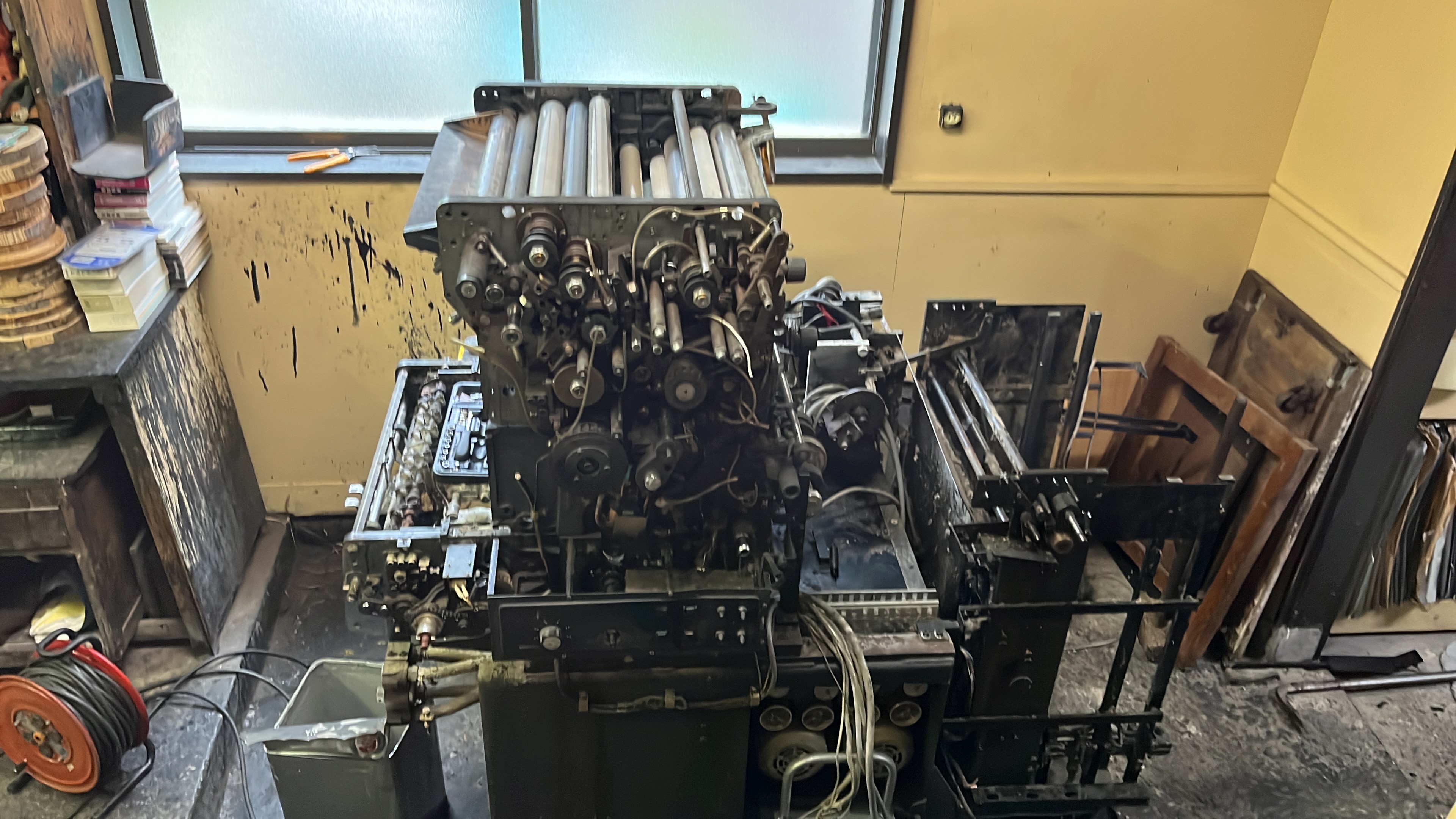 山福家と筑豊文庫は古く深い繋がり。印刷機解体の仕掛人・上野朱さんと現場の汗だくな様子をあれやこれや。