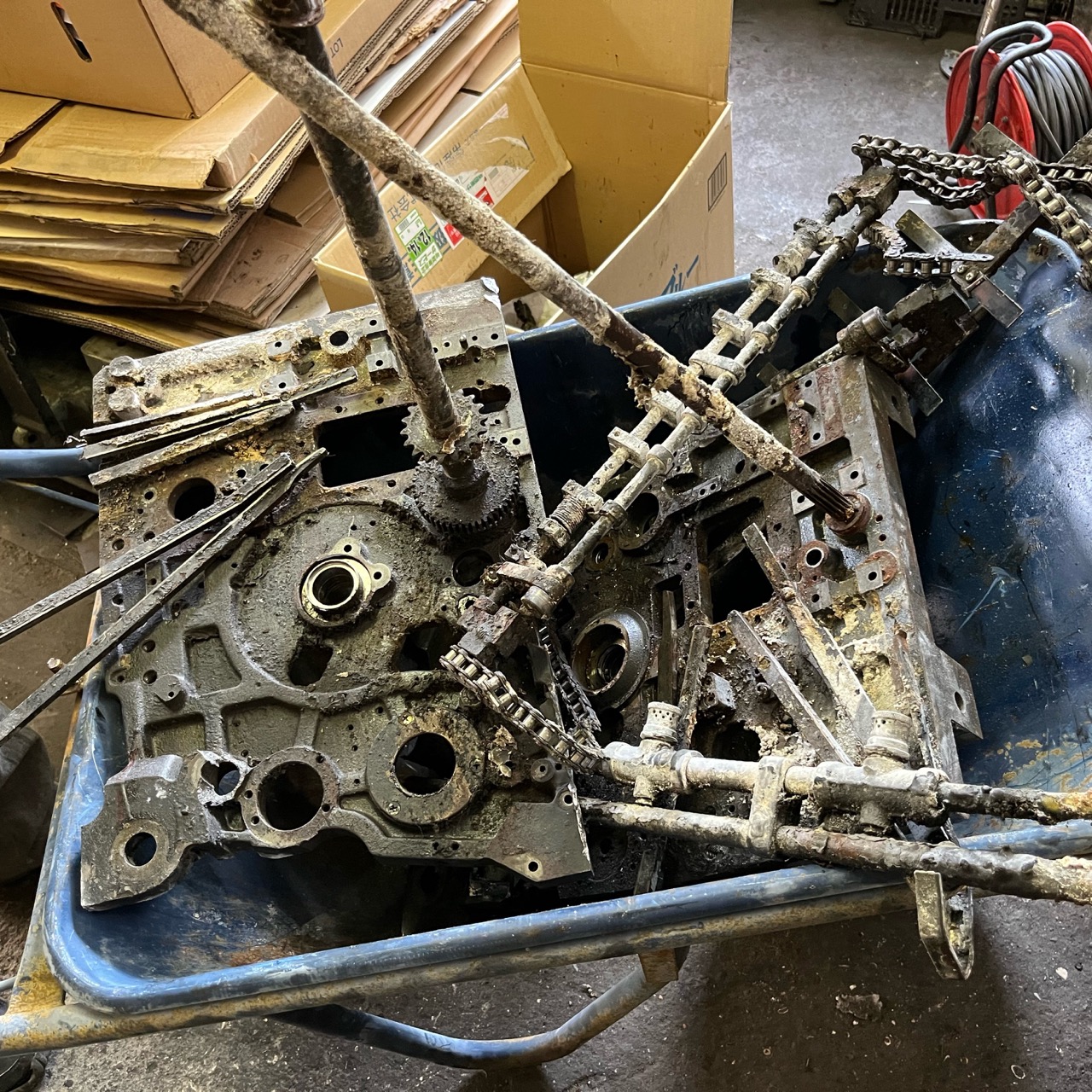 「山福家と親交が深かった筑豊文庫の上野朱氏の計らいで、職人を巻き込んだ印刷機械の解体が現実となる。」
