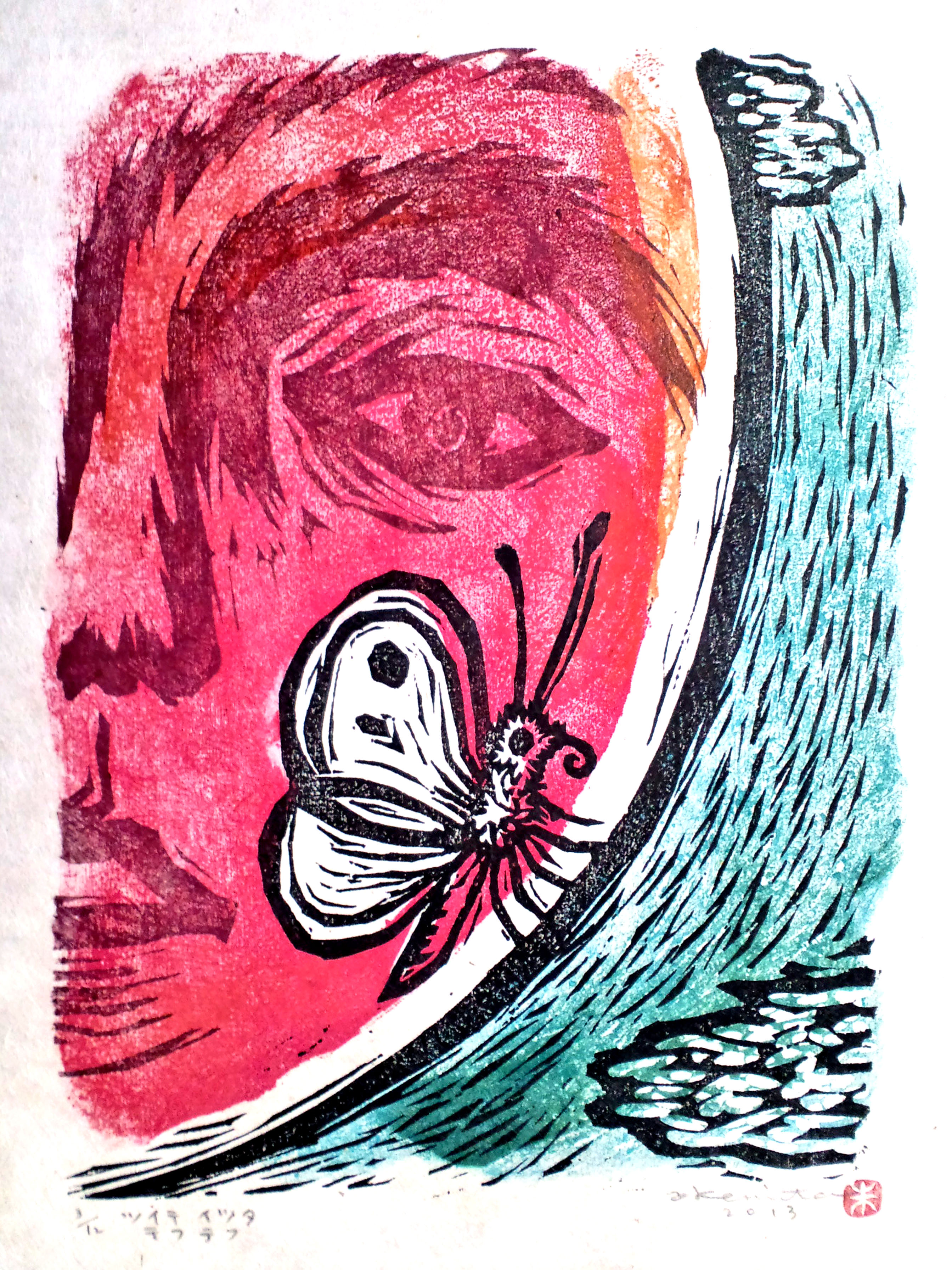 康政が仕事として行っていたのは、あくまでも輪転印刷機による印刷であり木版画の制作ではない。しかし、康政に関する展示と併せて朱実の作品を見ると、親子二代にわたって続いた複製可能な平面表現への関心が、芸術表現への探求へと転化する際に働いたであろう、必ずしも人間を中心としない自然界の力学が明らかになってくる。環境に根ざした極めて個人的な出来事に宿る普遍性こそが芸術の根源的価値のひとつであることを示唆している本展は、私たちが歴史の移り変わりが人々の日常や自然の営みとともにある事実をあらためて享受する貴重な機会となり得るのではないか。