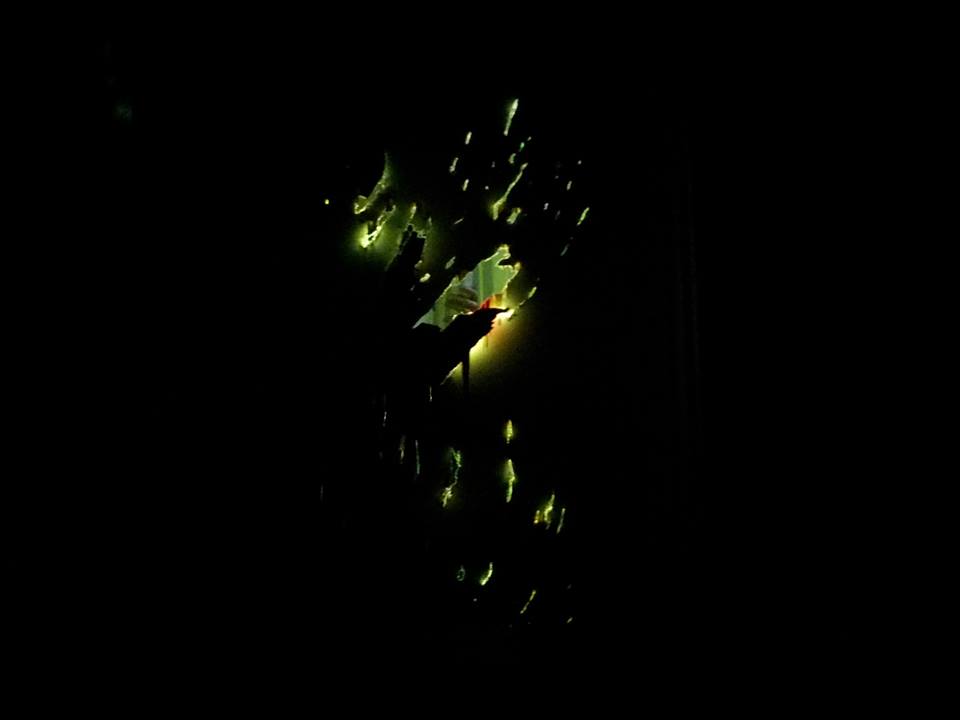 O'Haraのパフォーマンスは、Operation Table近辺に設けた秘密基地にドローイングを展示、そこに懐中電灯を手にした観客を伴い、薄暮のなかでドローイングを見せ、そのあと全員でその場にドローイングを加えていくというワークショップを行うものでした。