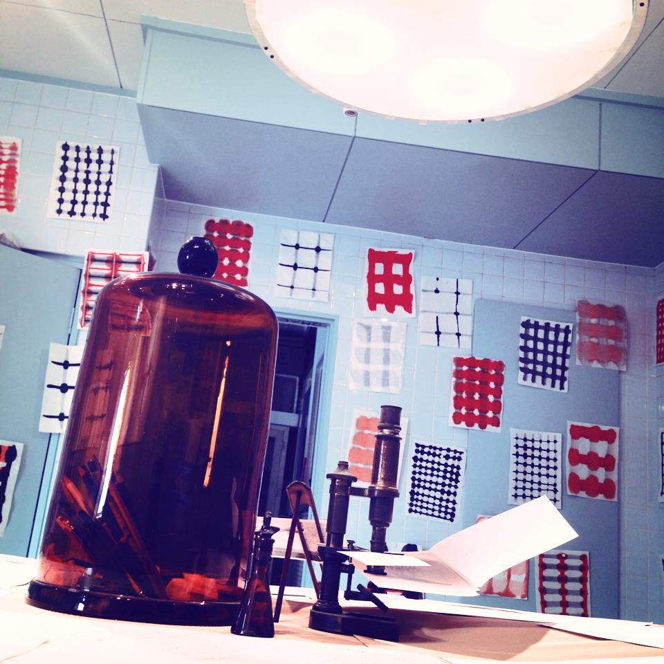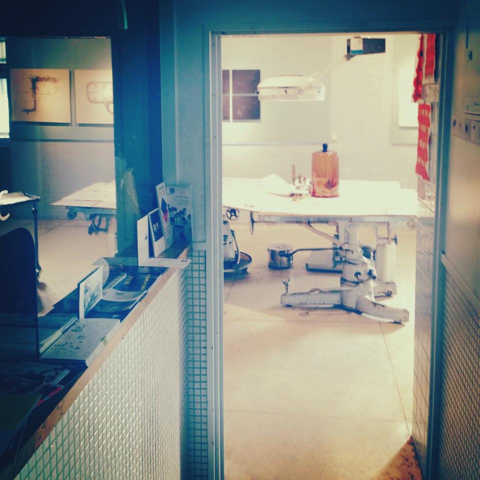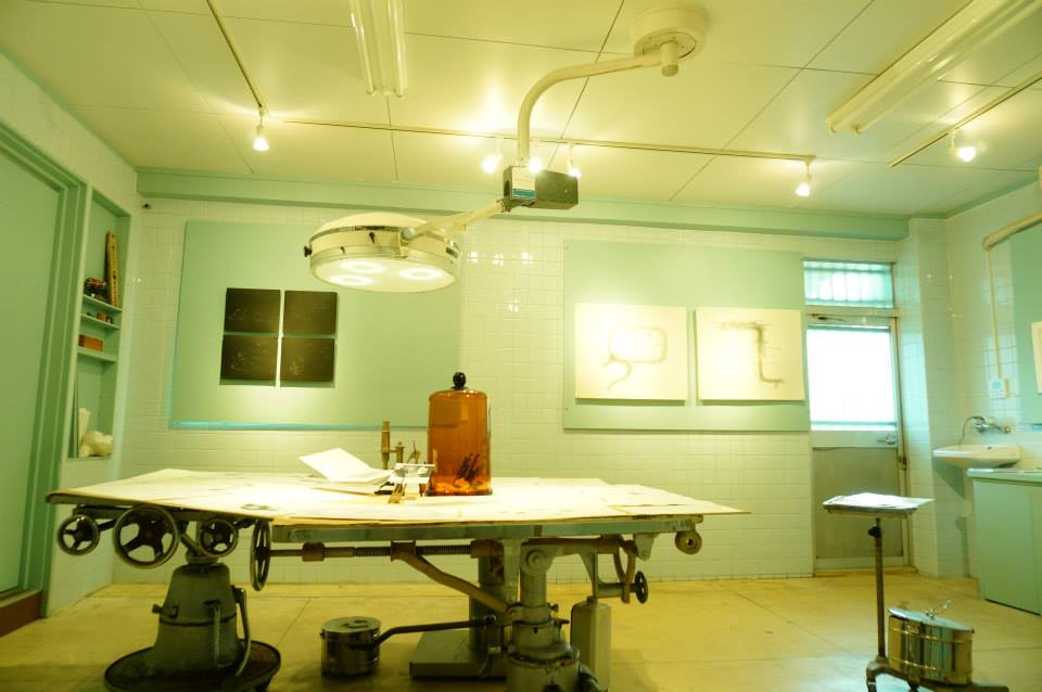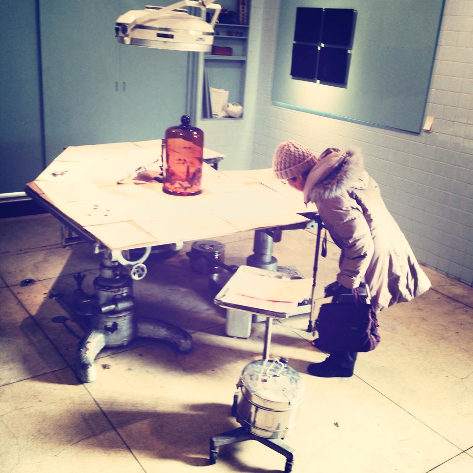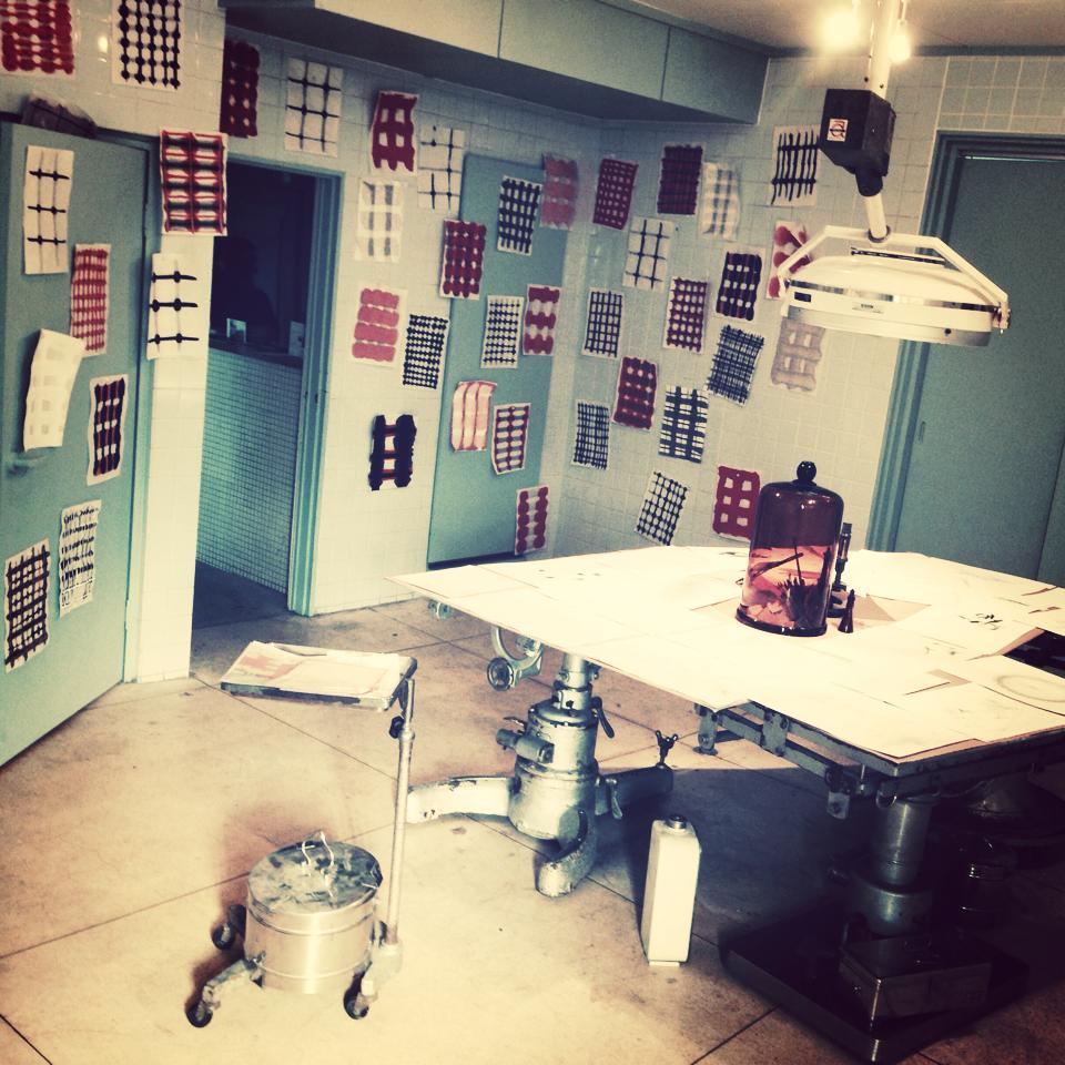Table was formerly a veterinary hospital, showing her LIVE TRANSMISSION drawings of