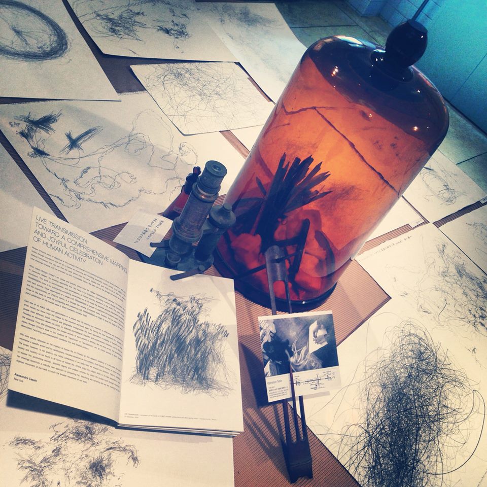 called LIVE TRANSMISSION are performative drawings. Through drawing, she captures the